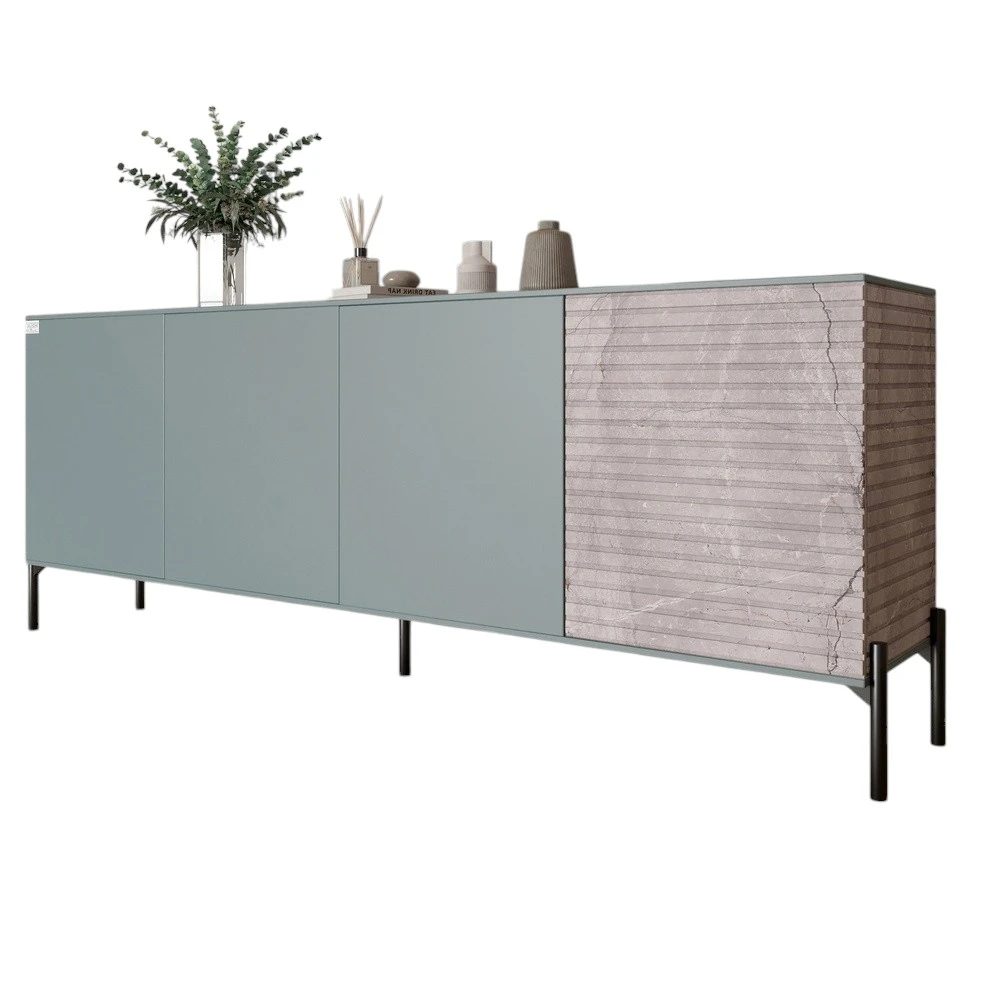 Комод у вітальню на чорних металевих ніжках LION Грей 204x38x76,5 см Граніт сірий/Камінь (LION-04261