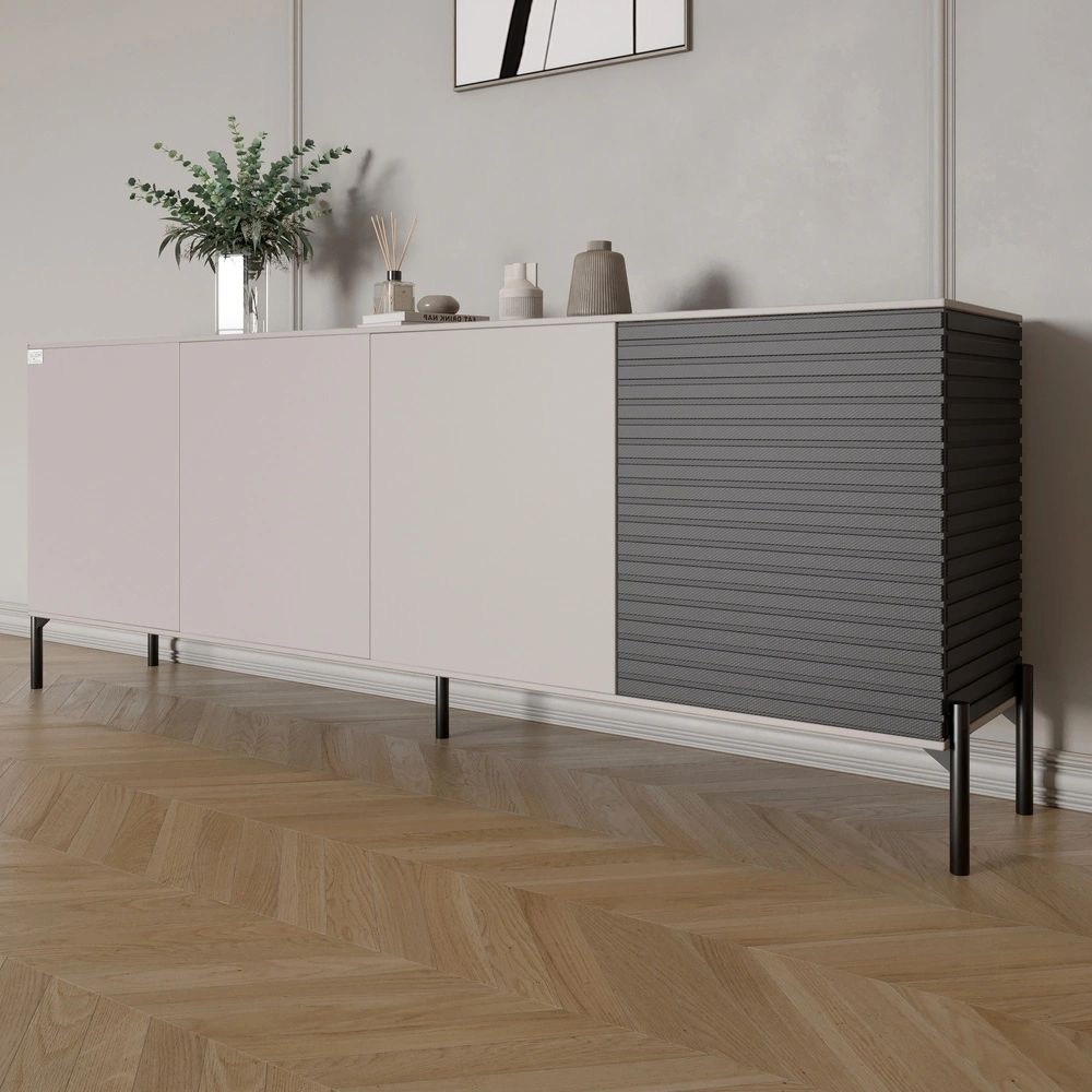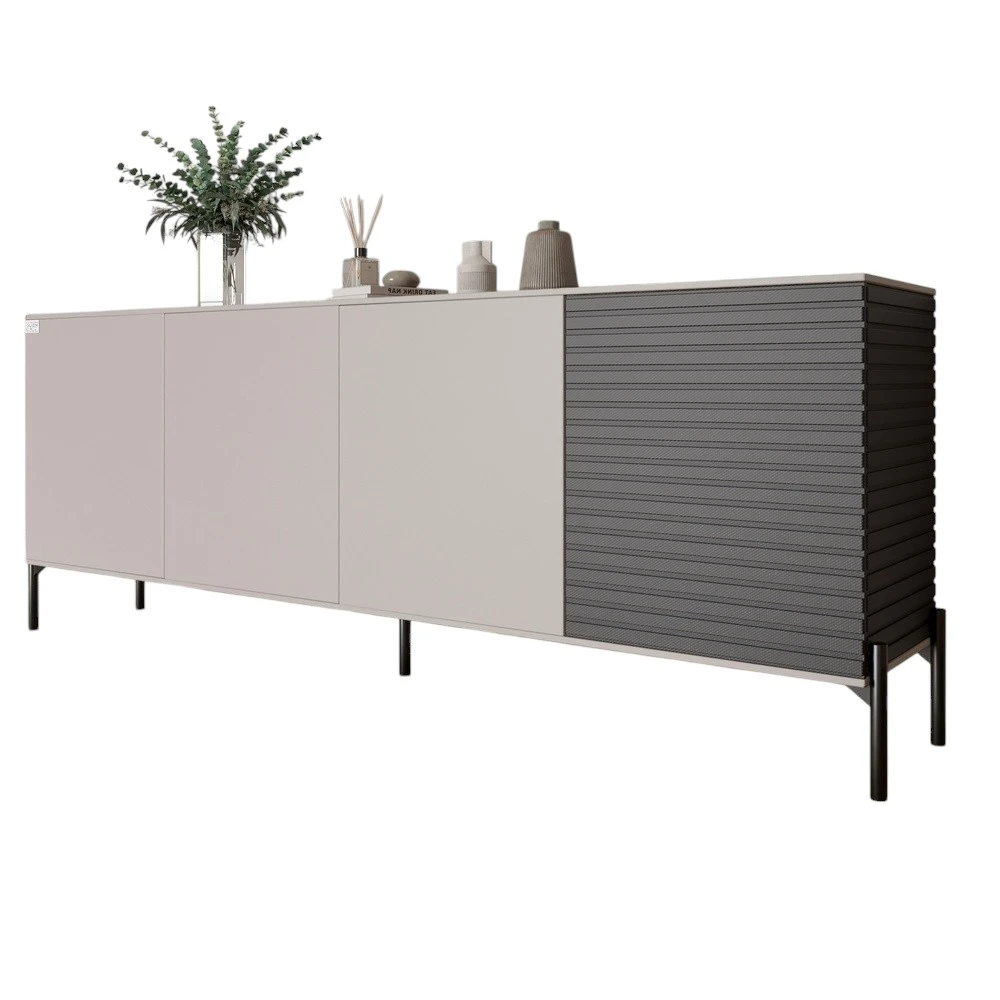 Комод у вітальню на чорних металевих ніжках LION Грей 204x38x76,5 см Кашемір/Асфальт (LION-042460)