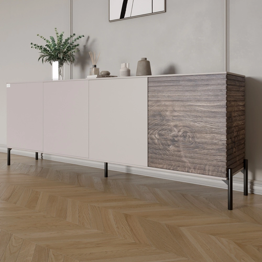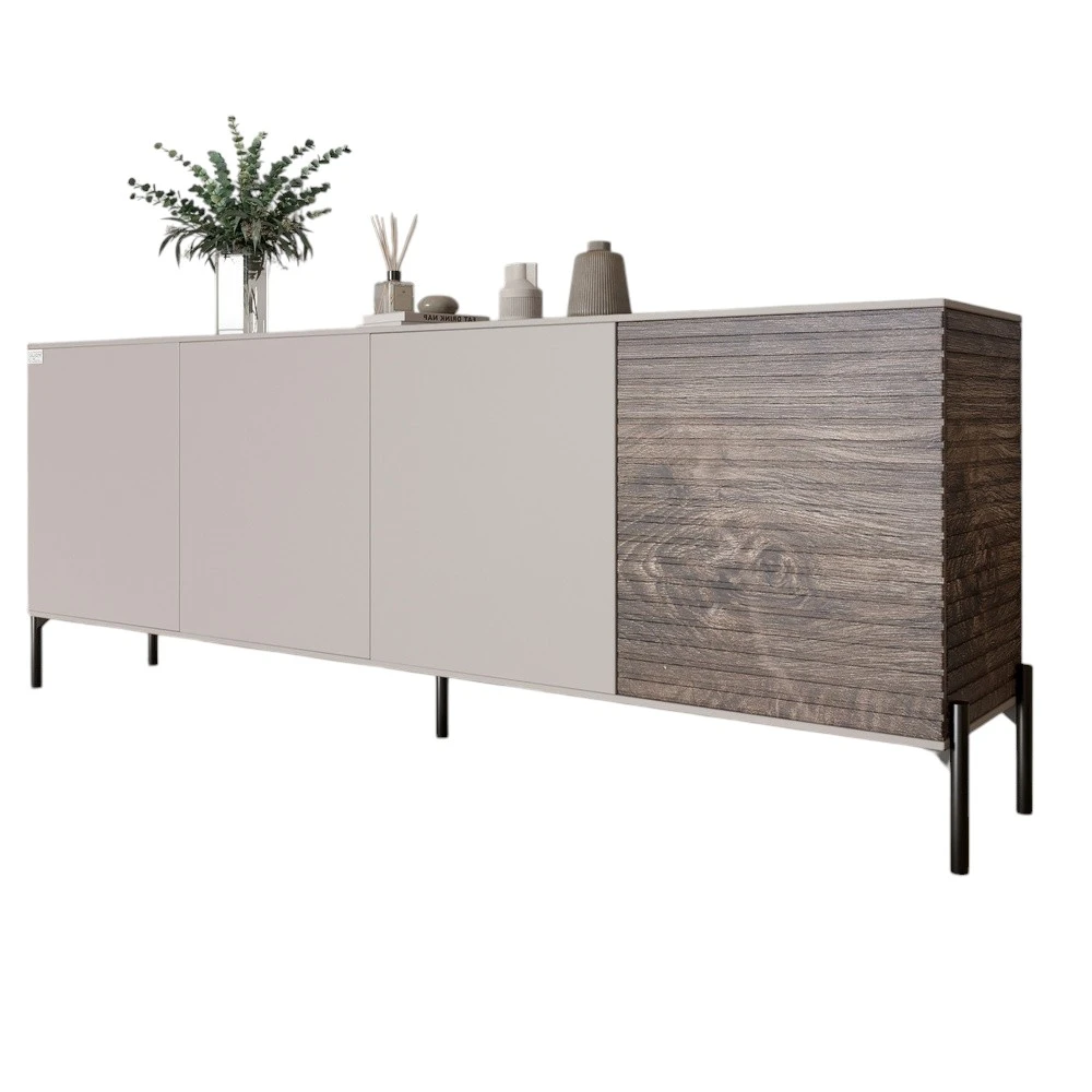 Комод у вітальню на чорних металевих ніжках LION Грей 204x38x76,5 см Кашемір/Дерево (LION-042508)