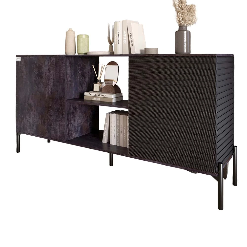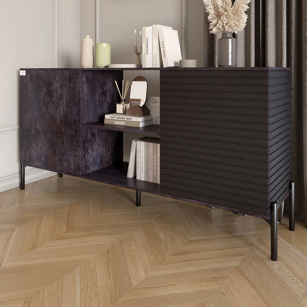 Комод відкритий на чорних металевих ніжках LION Грей Бетон темний/Асфальт (LION-042714)