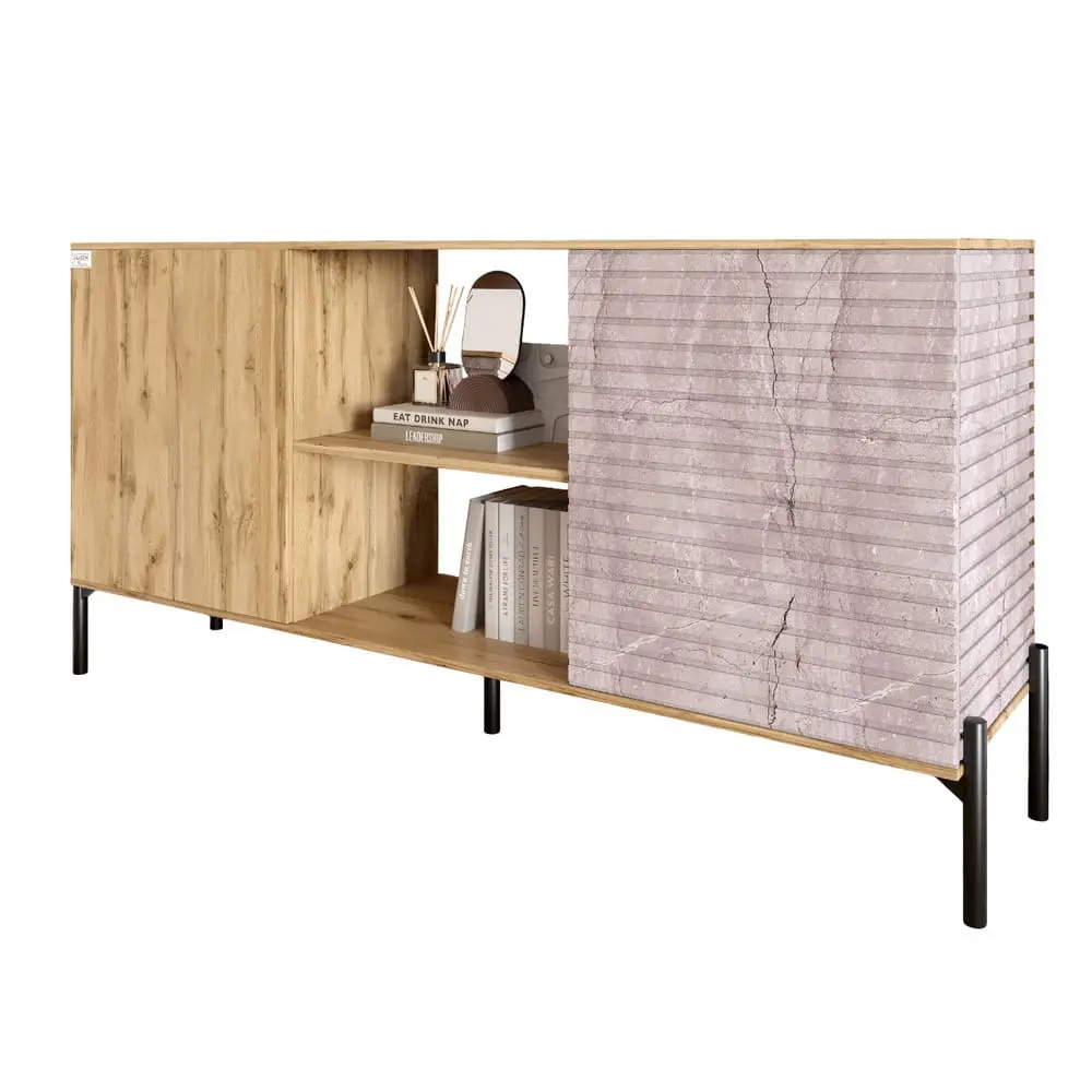 Комод відкритий на чорних металевих ніжках LION Грей Дуб Аппалачі/Камінь (LION-042792)