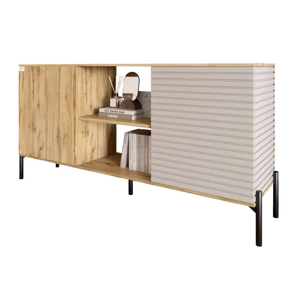 Открытый комод LION на черных металлических ножках – это идеальное решение для тех, кто ценит современный дизайн и функциональность. Его элегантный вид в сочетании с цветами Грей Дуб Аппалачи и Кашемир придает особый шарм любому пространству. Комод не только украсит вашу комнату, но и обеспечит удобный доступ к вашим вещам, сохраняя их в порядке.