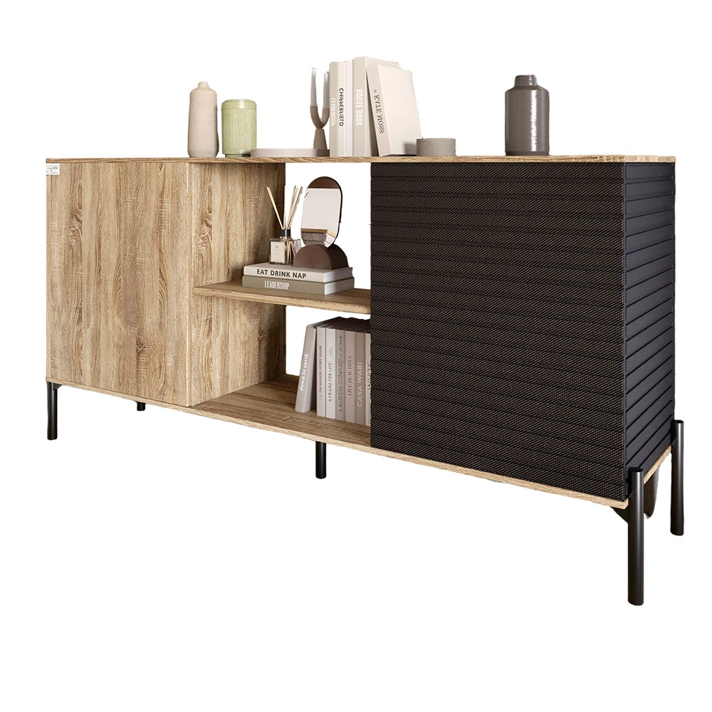Комод открытый LION Грей – стиль и функциональность в кожаной обивке