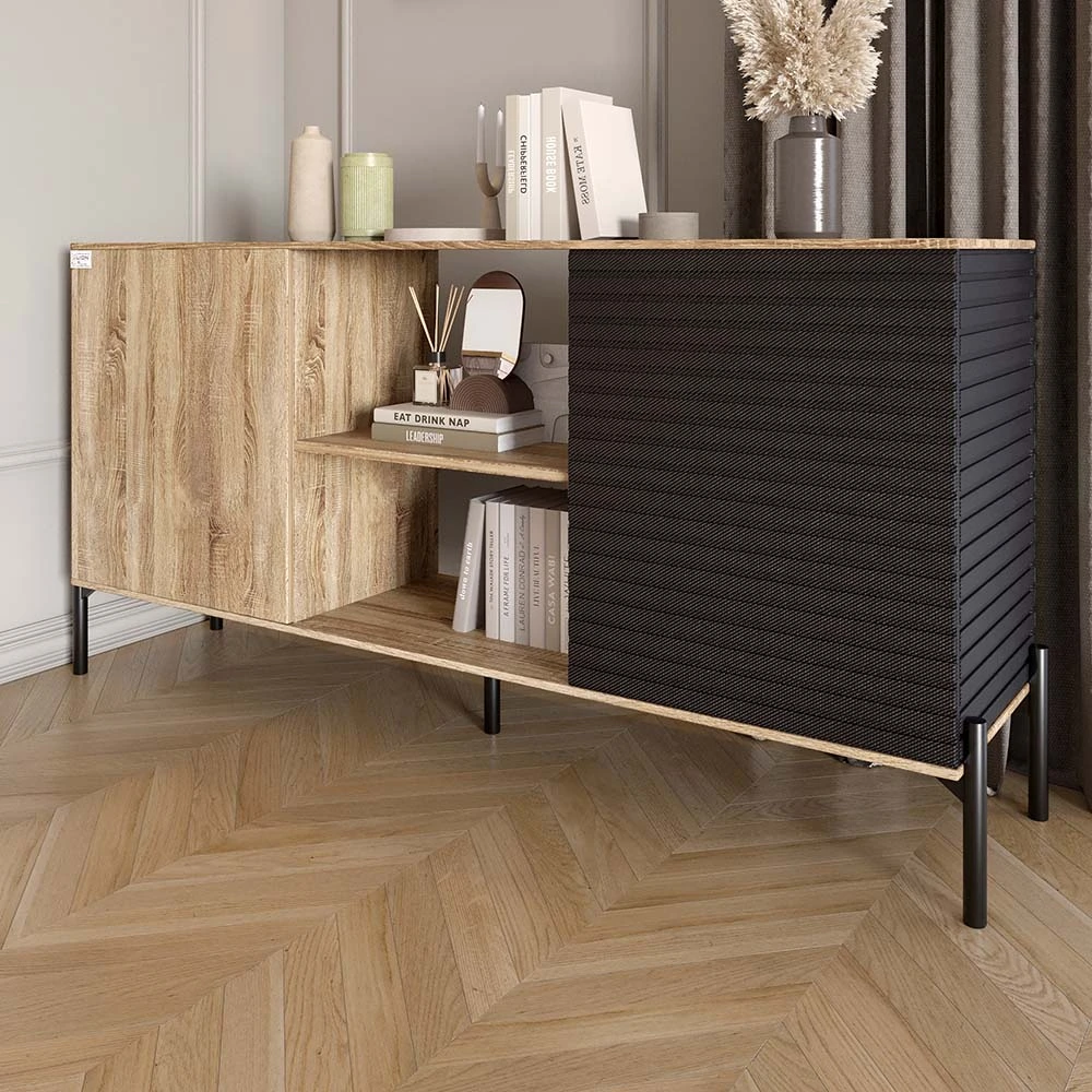 Комод відкритий на чорних металевих ніжках LION Грей Дуб Сонома трюфель/Асфальт (LION-042719)