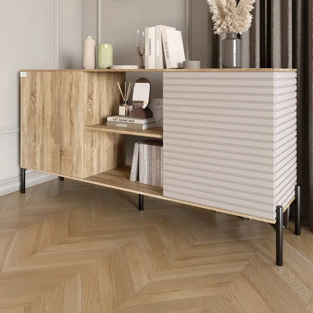 Комод открытый LION Грей из коллекции Грей станет настоящей жемчужиной вашего современного интерьера. Его элегантный дизайн сочетает простоту форм и изысканные текстуры, что делает его уникальным элементом меблировки. Гладкий фасад с текстурной секцией не только привлекает внимание, но и придает комод стильный вид, который идеально впишется в спальню, гостиную или рабочий кабинет. Металлические ножки придают легкости конструкции, обеспечивая при этом стабильность и долговечность.
