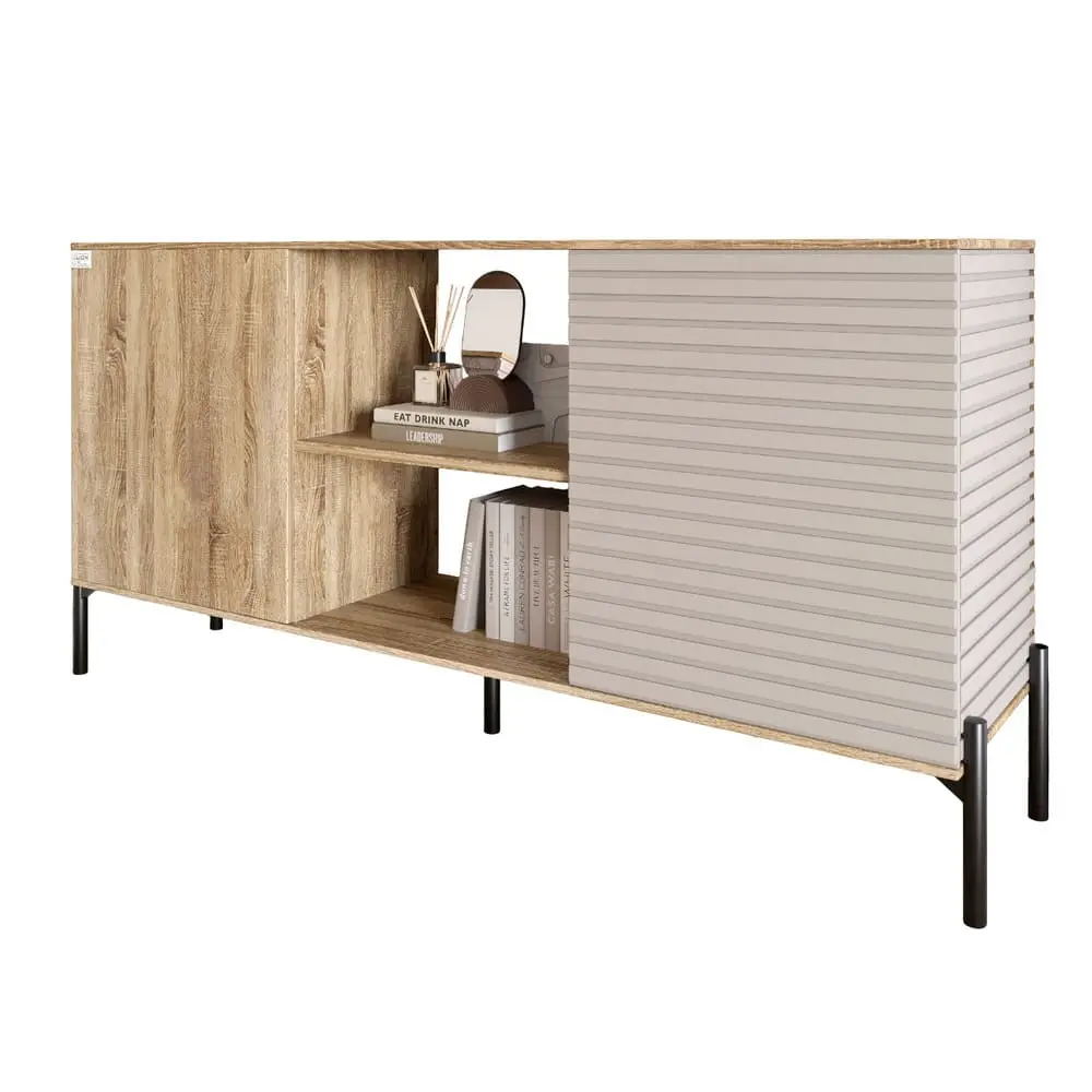 Комод відкритий на чорних металевих ніжках LION Грей Дуб Сонома трюфель/Кашемір (LION-042869)