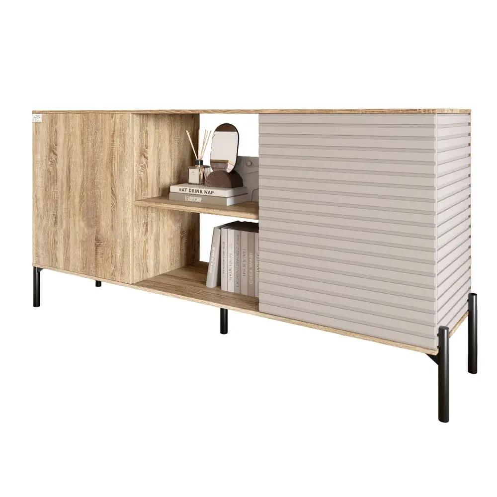 Комод відкритий на чорних металевих ніжках LION Грей Дуб Сонома/Кашемір (LION-042868)
