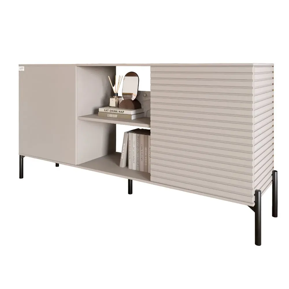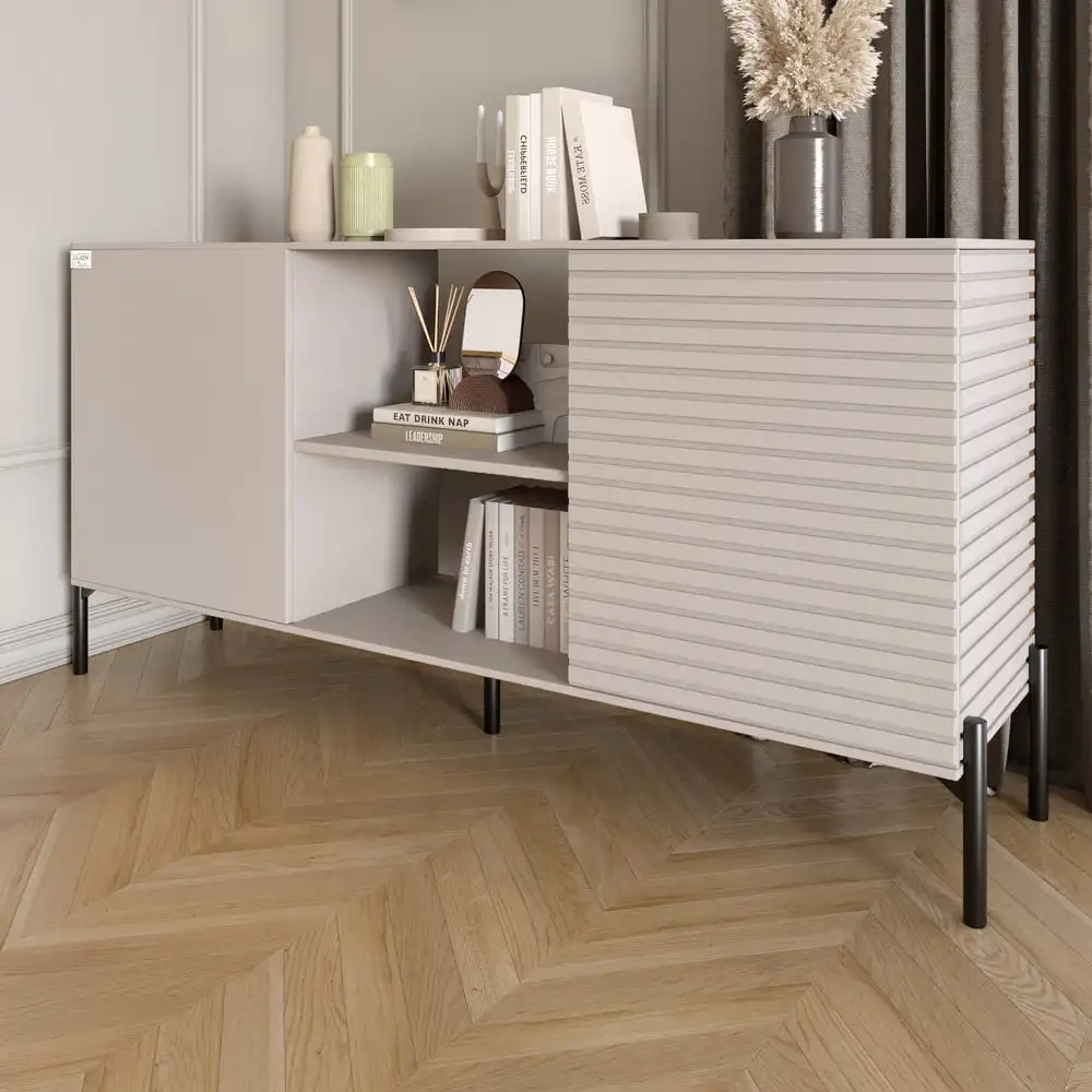 Не только эстетический, но и практичный, комод LION имеет три функциональных отделения, позволяющих организовать пространство. Закрытые полки подходят для хранения белья и аксессуаров, а открытые секции идеально подходят для книг и декора. Минимализм в дизайне без выступающих ручек гарантирует безопасность и удобство использования, а высокий просвет между комодом и полом облегчает уборку. Выбор цвета ножек – черный или золотой, позволяет адаптировать комод к любому интерьеру.