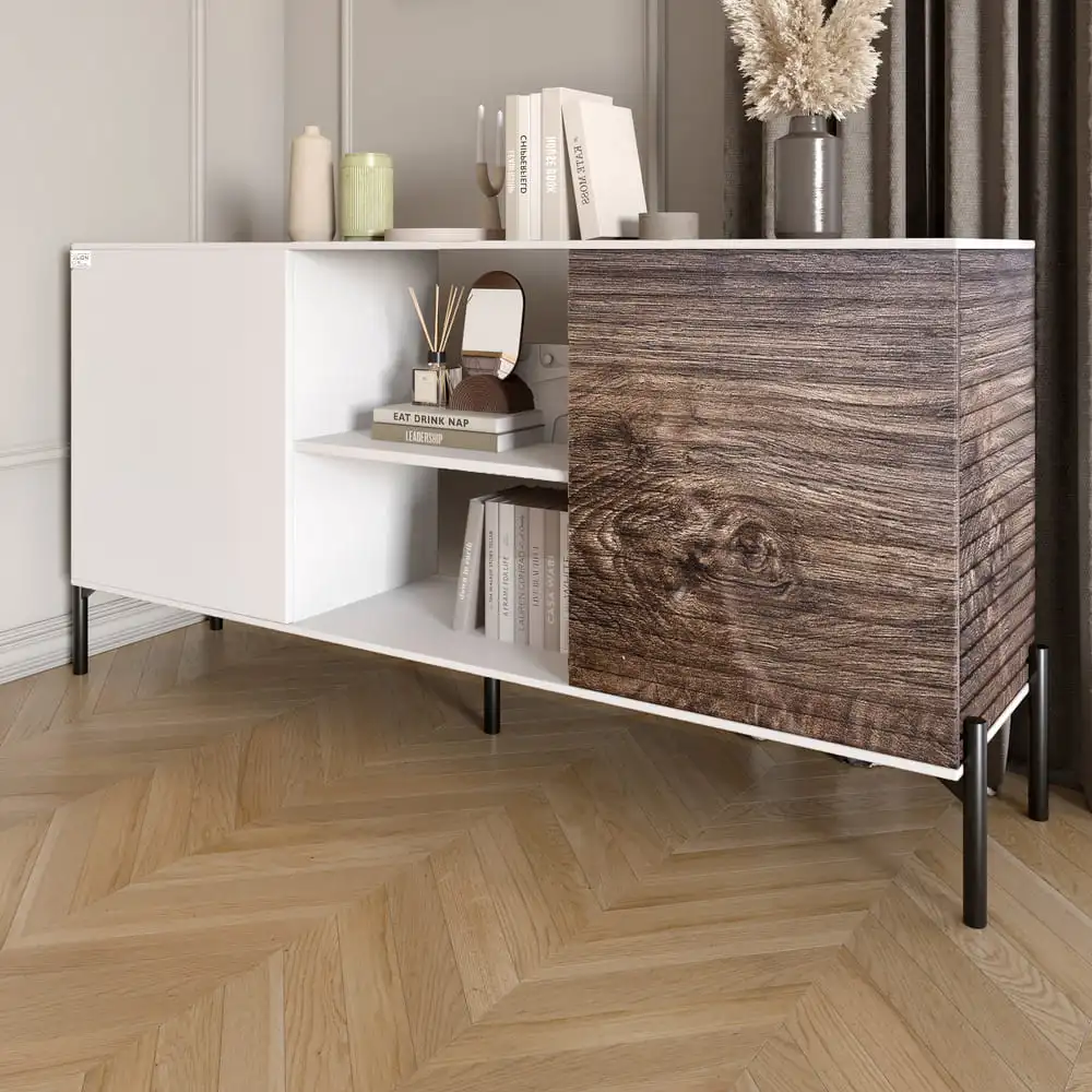 Открытый комод LION — это идеальное сочетание современного дизайна и функциональности. Его стильные черные металлические ножки придают стойкость и элегантность, а также создают впечатление воздушности. Выполненный в цвете Грей Нимфея, этот комод гармонично впишется в любой интерьер, добавляя нотку современности и утонченности.
