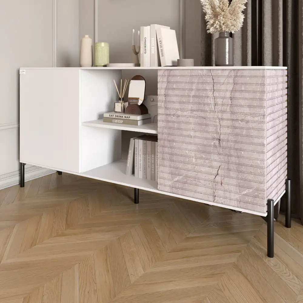 Комод из коллекции Грей – это воплощение современного дизайна, которое идеально впишется в любой интерьер. Его стильный гладкий фасад, дополненный текстурной секцией, привлекает внимание и придает особый шарм. Металлические ножки не только придают легкость, но и обеспечивают надежность и долговечность конструкции. Просторные отделения внутри комода позволяют удобно хранить одежду, постельное белье и другие важные вещи, делая его универсальным решением для спальни, гостиной или рабочего кабинета. Закрытые полки и открытые секции создают идеальную организацию пространства, а минималистичный стиль без ручек обеспечивает безопасность и практичность. Благодаря золотистым ножкам и высокому просвету между полом и комодом, вы сможете легко поддерживать чистоту в вашем доме. Выберите комод LION Грей для стильного и функционального решения вашего интерьера!