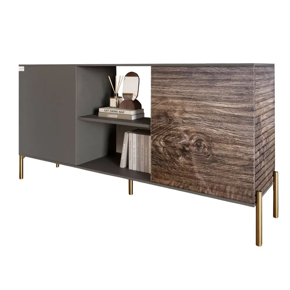 Вы ищете идеальное решение для хранения вещей, которое не только выполнит свою функцию, но и станет настоящим украшением вашего дома? Комод открытый LION на золотых металлических ножках – это именно то, что вам нужно! Его современный дизайн в цвете Грей Антрацит в сочетании с натуральным деревом привлекает внимание и придает элегантности любому пространству.