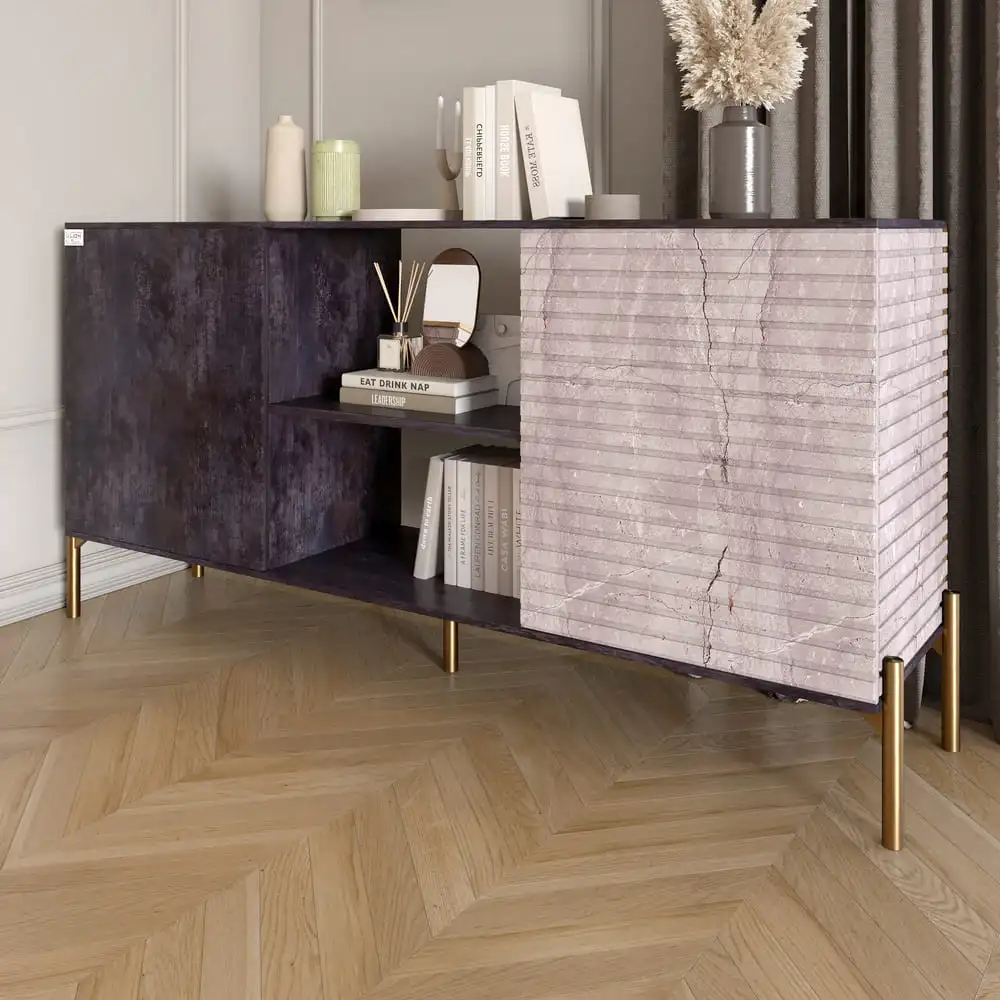 Не просто мебель, а элемент вашего интерьера! Открытый вариант комода на золотых металлических ножках подчеркивает изысканность и придает легкость. Темный Грей Бетон в сочетании с Каминем создает неповторимый контраст, который подходит к любому стилю оформления, от лофта до классики. Благодаря продуманной конструкции комод LION не только украсит ваше пространство, но и станет удобным местом для хранения. Вы с легкостью сможете организовать свои вещи, создав порядок в вашем доме. Больше не нужно искать место для книг, декора или других важных предметов – этот комод обеспечит вам оптимальное пространство.