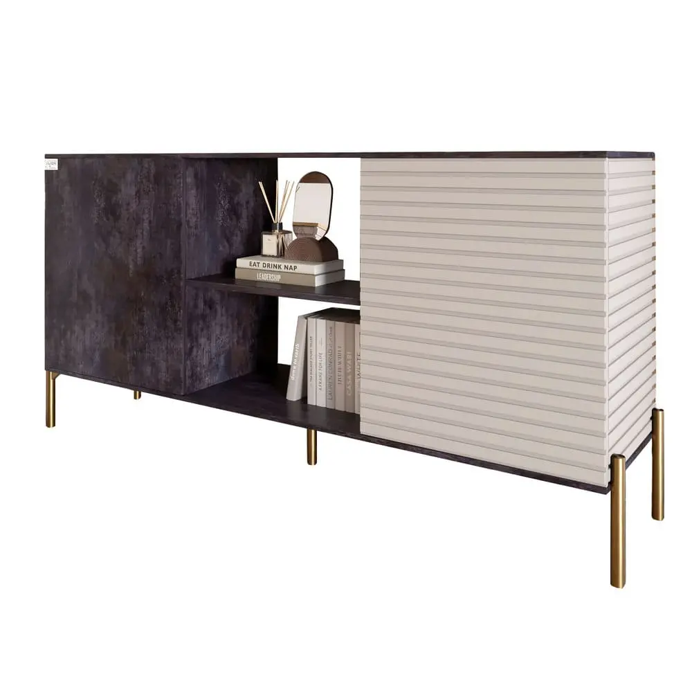 Комод открыт на золотых металлических ножках LION Грей Бетон темный/Кашемир