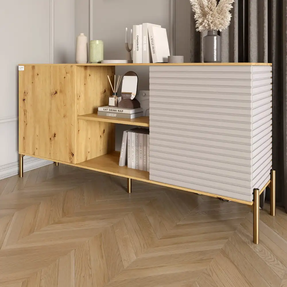 Открытый комод LION — это идеальное решение для тех, кто ценит современный дизайн и удобство. С его элегантными золотыми металлическими ножками этот комод становится ярким акцентом любой комнаты. Сочетание цветов Грей Дуб Артизан и Кашемир создают неповторимую атмосферу уюта и стиля.