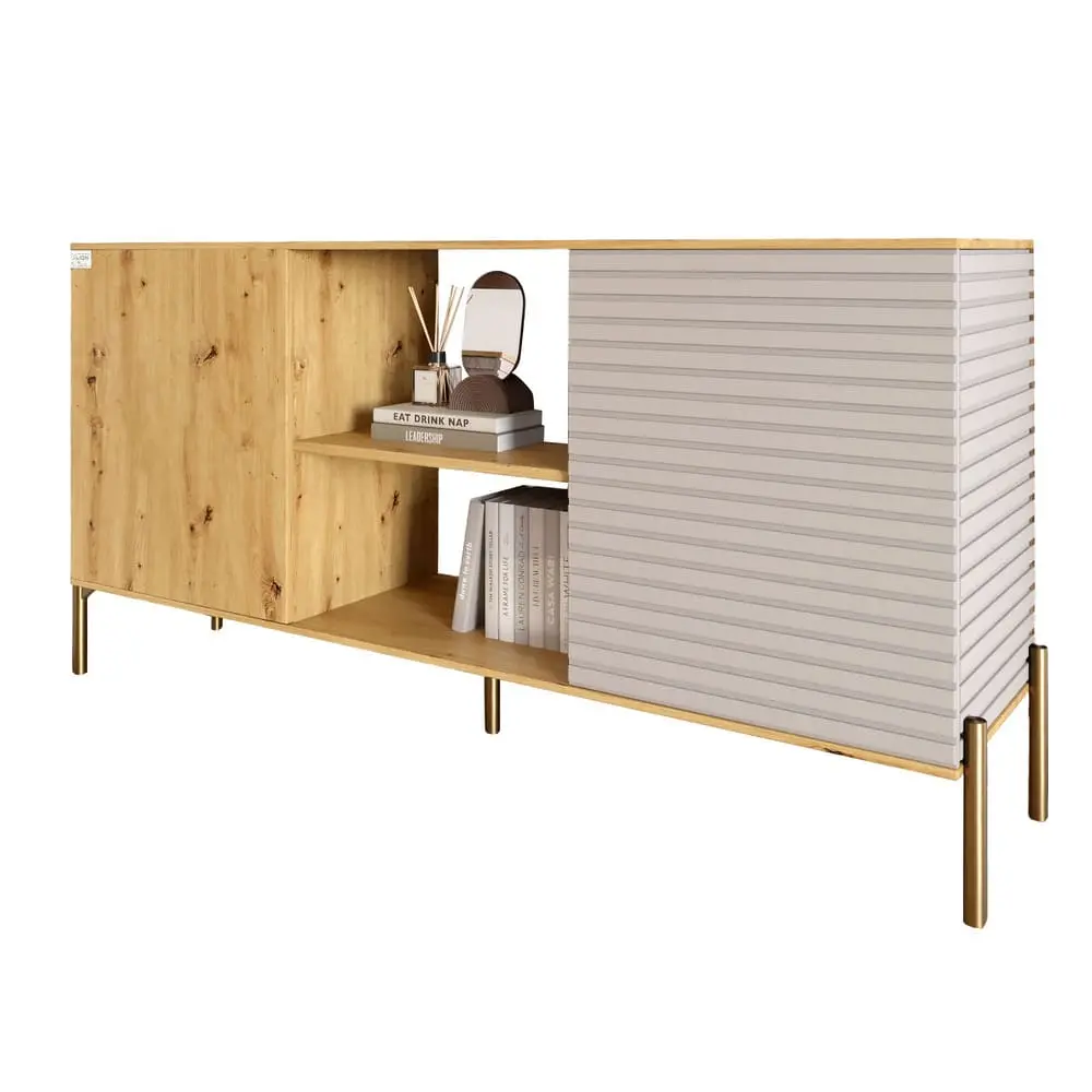 Комод відкритий на золотих металевих ніжках LION Грей Дуб Артизан/Кашемір (LION-042898)