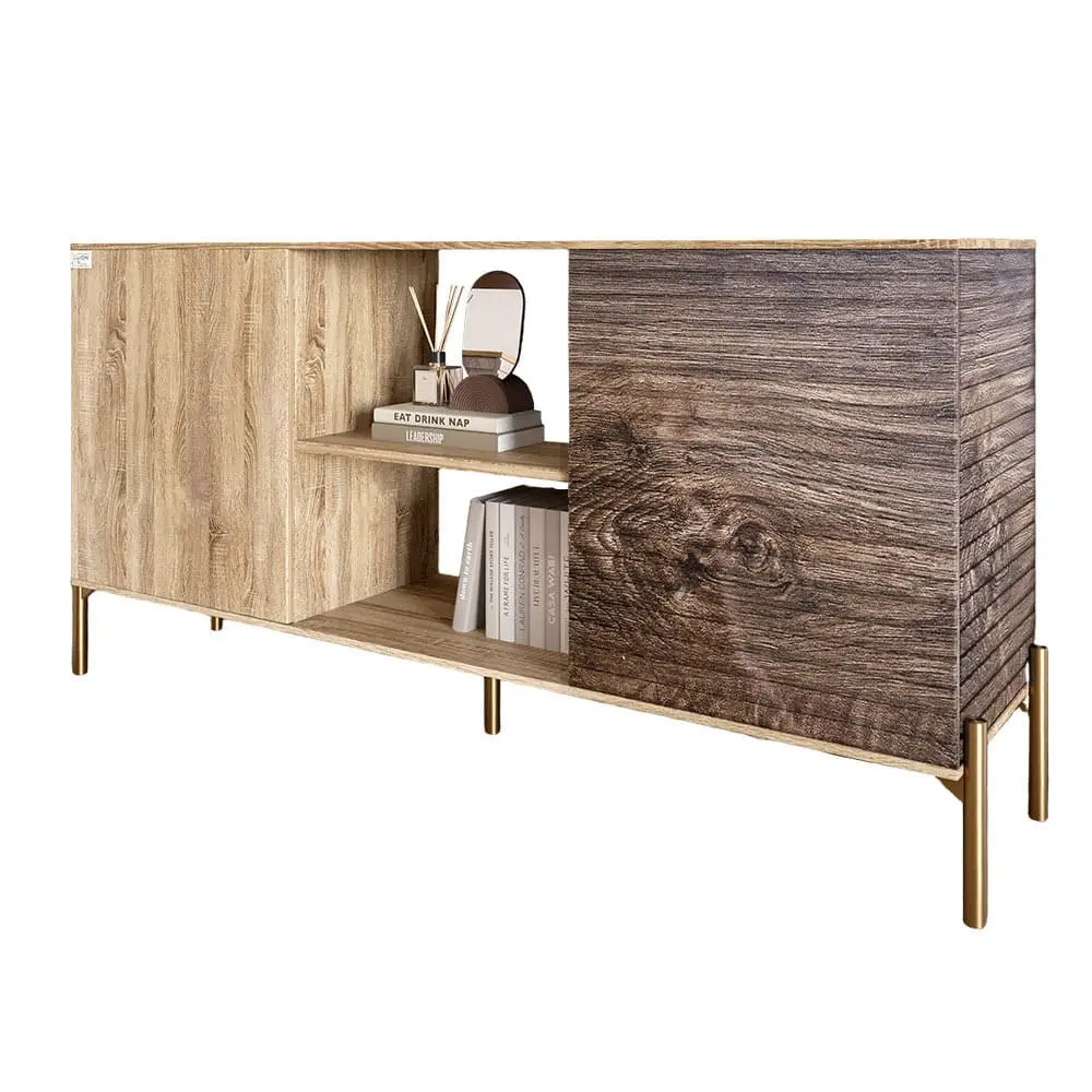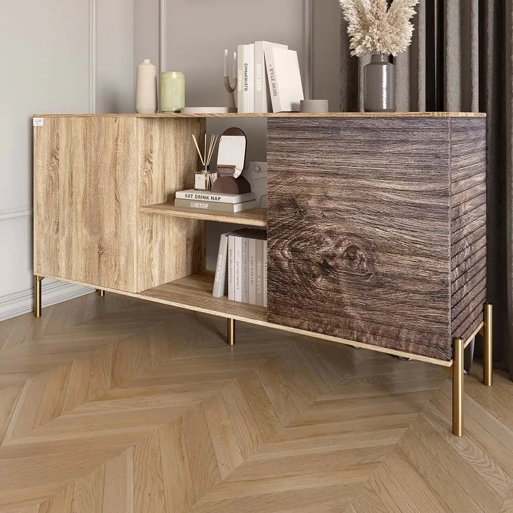 Золотые металлические ножки не только обеспечивают надежность и стабильность, но и придают комод изысканный вид. Вы сможете наслаждаться его эстетикой, а также практичностью, ведь открытые полки позволяют легко организовать ваши вещи и подчеркнуть ваш стиль.