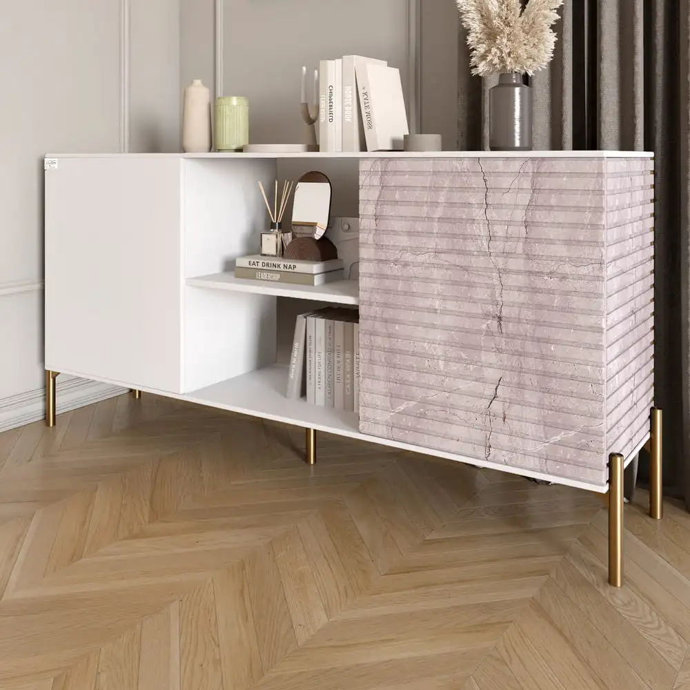Откройте для себя идеальное сочетание элегантности и функциональности с комодом LION. Этот стильный мебельный элемент станет настоящим украшением вашего интерьера, благодаря своему современному дизайну и изящной цветовой гамме. Золотые металлические ножки придают ему легкость и изысканность, что делает его идеальным выбором для любой комнаты. Его открытые полки позволяют легко организовать вещи, а также демонстрировать любимые предметы декора. Благодаря продуманной конструкции, вы сможете наслаждаться удобством и легкостью доступа ко всему необходимому.