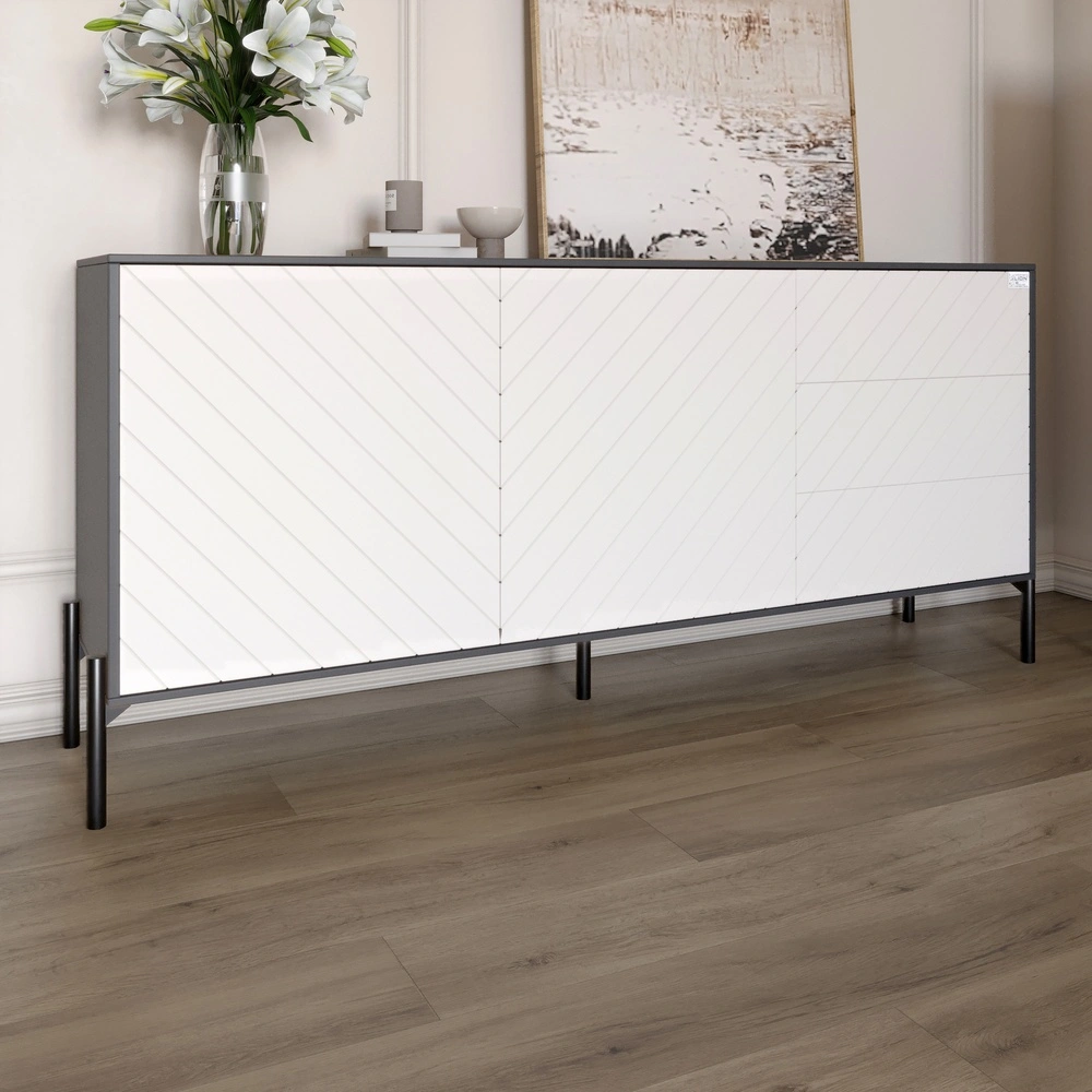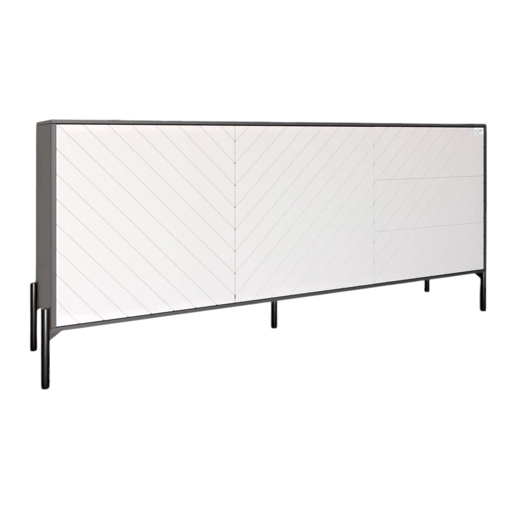 Откройте для себя комод LION, который станет идеальным дополнением вашего интерьера. Благодаря своим черным металлическим ножкам, это мебельное изделие выглядит современно и стильно, подчеркивая ваш хороший вкус. Комод изготовлен в изысканном антрацитовом и белом цветах, что позволяет ему легко вписаться в любое пространство, от гостиной до спальни.