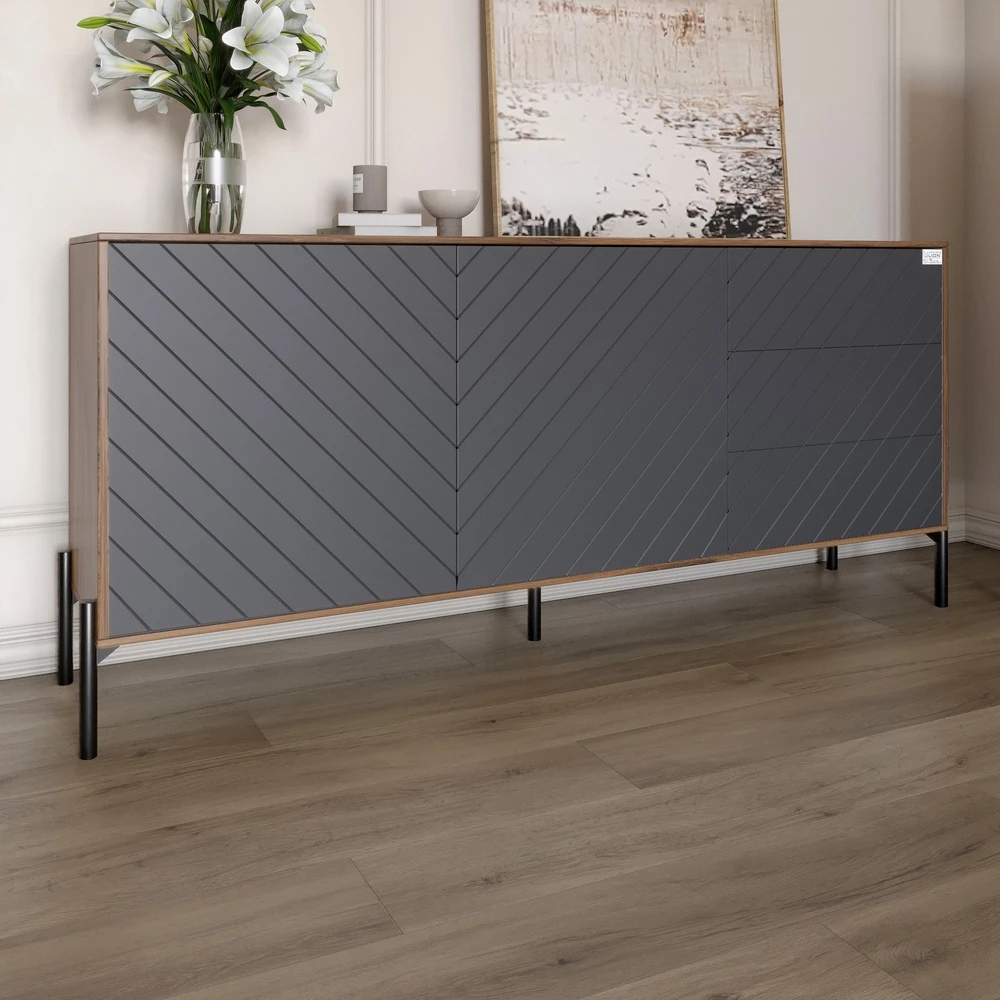 Комод з чорними металевими ніжками LION Амарант 168x40x76,5 см Дуб Ліворно/Графітовий (LION-041890)