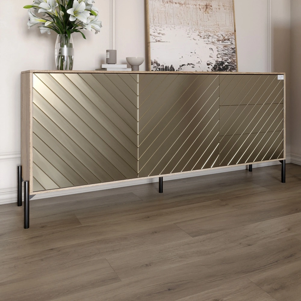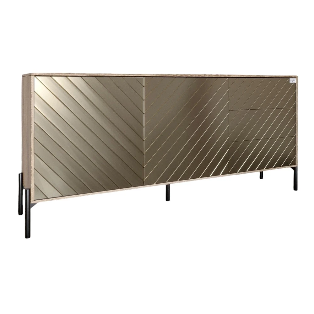 Откройте для себя идеальное сочетание стиля и практичности с комодом LION. Это элегантное мебельное изделие станет настоящим украшением вашего дома, дополняя интерьер современным шармом. Благодаря своим черным металлическим ножкам комод выглядит стильно и надежно, а его компактные размеры позволяют разместить его даже в небольших помещениях.