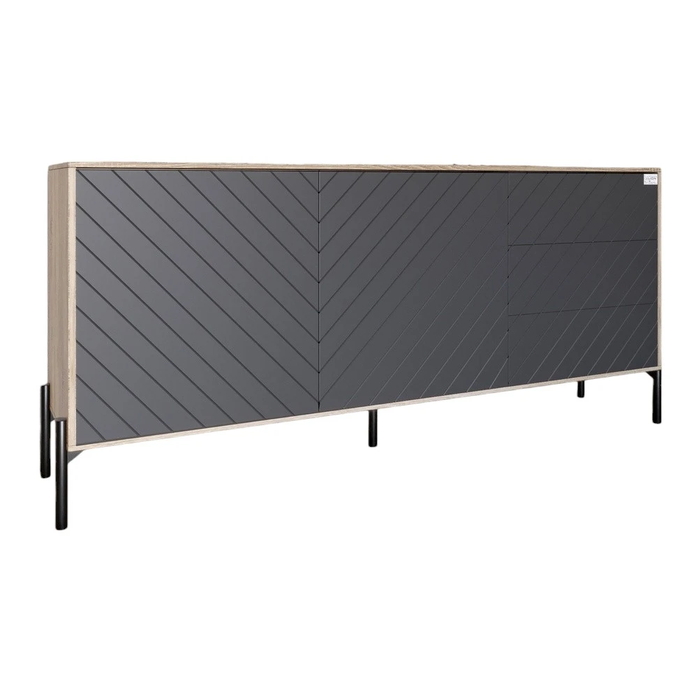 Вы мечтаете об идеальном сочетании стиля и практичности? Комод LION с черными металлическими ножками – это именно то, что вам нужно! Его элегантный дизайн в цветах дуб сонома и графитовый оттенок придает современному виду любое помещение, а также гармонично вписывается в разнообразные стили интерьера. Этот комод не только красив, но и чрезвычайно функционален. Благодаря своим размерам 168x40x76,5 см, он предлагает достаточно места для хранения вещей, сохраняя при этом компактность. Вы сможете легко организовать свои вещи, сохраняя порядок в доме.