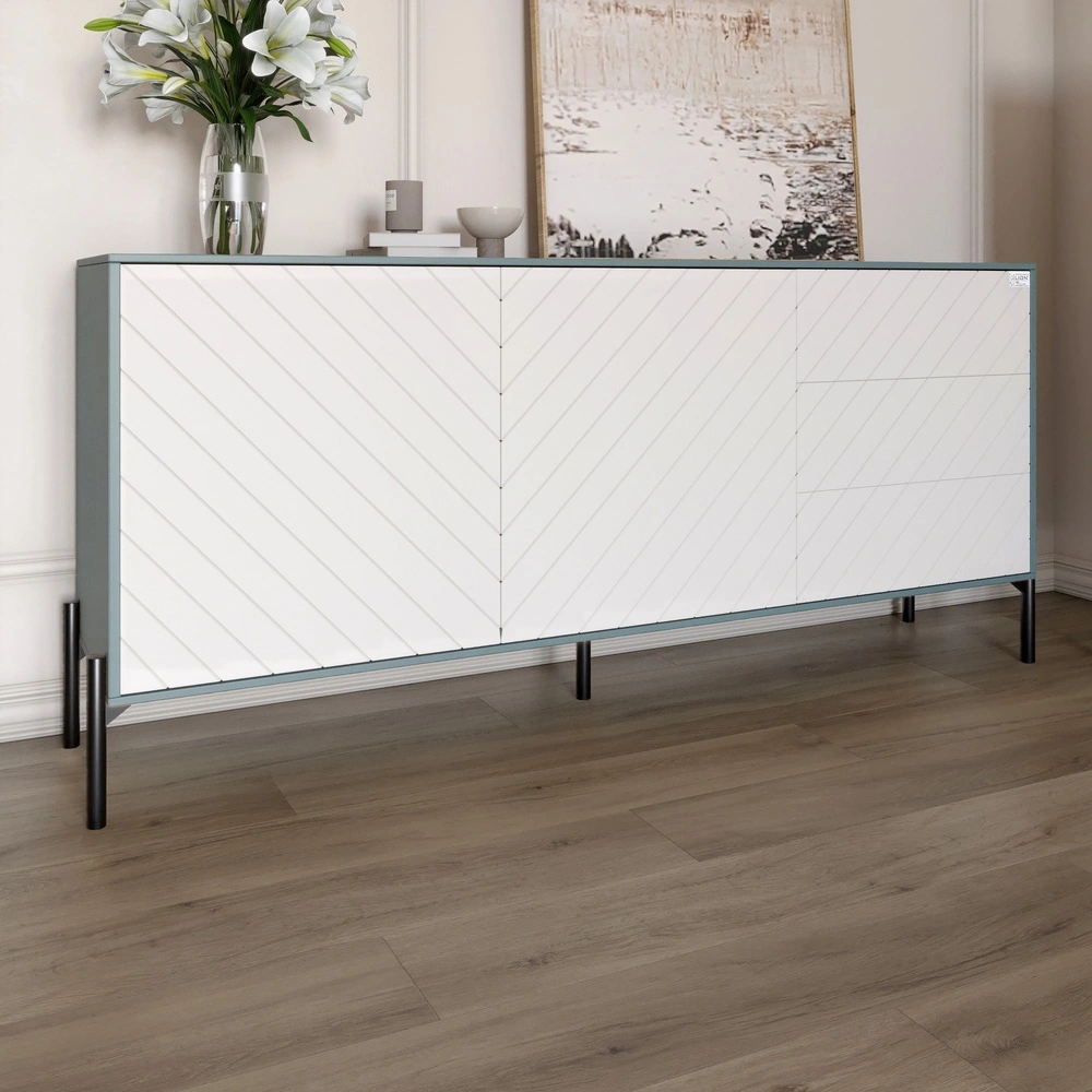 Изготовленный из высококачественных материалов, комод имеет размеры 168x40x76,5 см, что делает его идеальным выбором для хранения вещей в гостиной, спальне или коридоре. Гранитный серый и белый цвета гармонично сочетаются, создавая стильный контраст, подходящий к любому интерьеру. Ваш дом заслуживает лучшего!