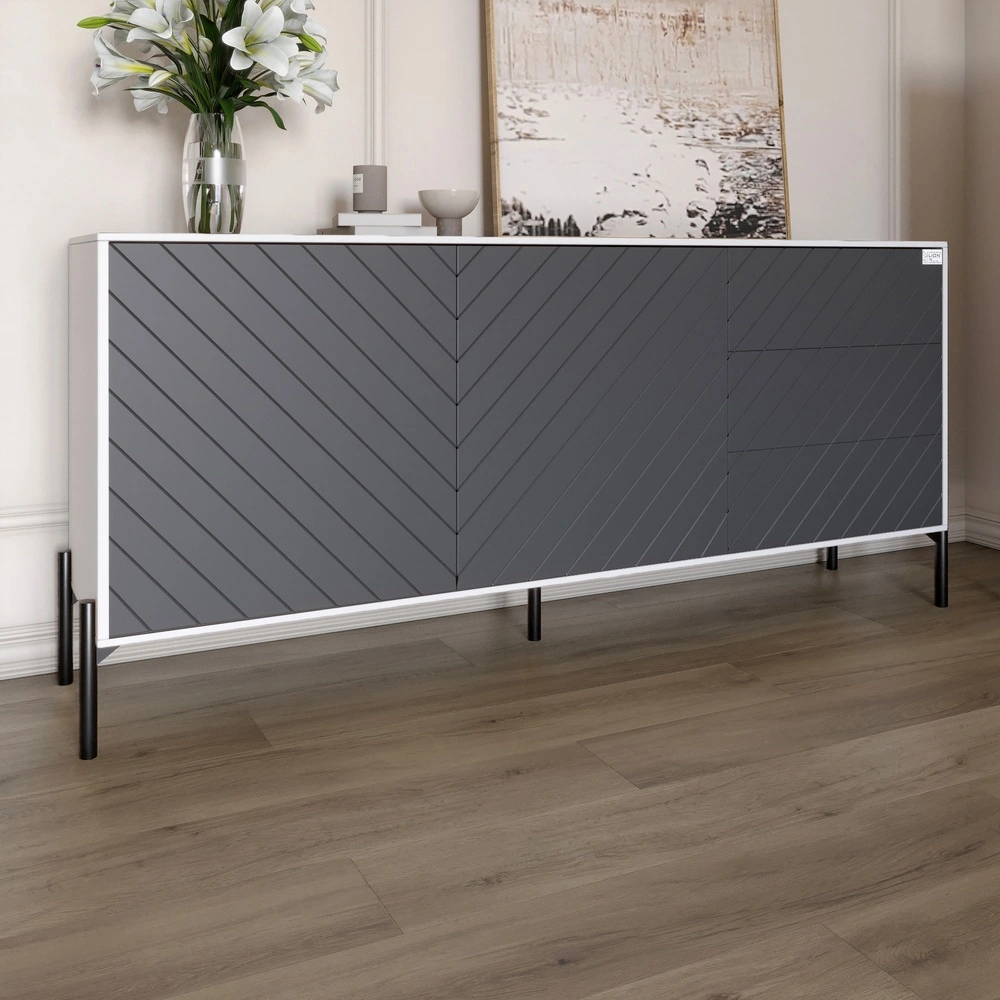 Изготовленный из высококачественных материалов, комод LION не только привлекателен, но и чрезвычайно прочен. Белый и графитовый цвета в сочетании с черными ножками создают привлекающий стильный контраст. Вы сможете легко сочетать его с другой мебелью, не ограничивая свое воображение в оформлении интерьера. Благодаря продуманной конструкции комод имеет достаточно места для хранения всех ваших вещей. Вы сможете организовать свое пространство так, как вам удобно, соблюдая порядок и чистоту. Это не просто мебель, а настоящий помощник в повседневной жизни, который поможет вам сэкономить время и усилия.