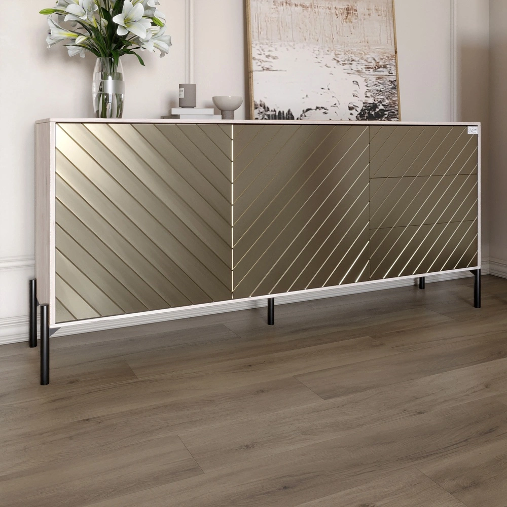 Вам нужен стильный и практичный мебельный элемент, который подчеркнет индивидуальность вашего пространства? Комод LION с черными металлическими ножками – это идеальное решение для тех, кто ценит современный дизайн и функциональность. Его элегантный вид из дымчатого и перламутрового металлика придает нотку роскоши в любую комнату.