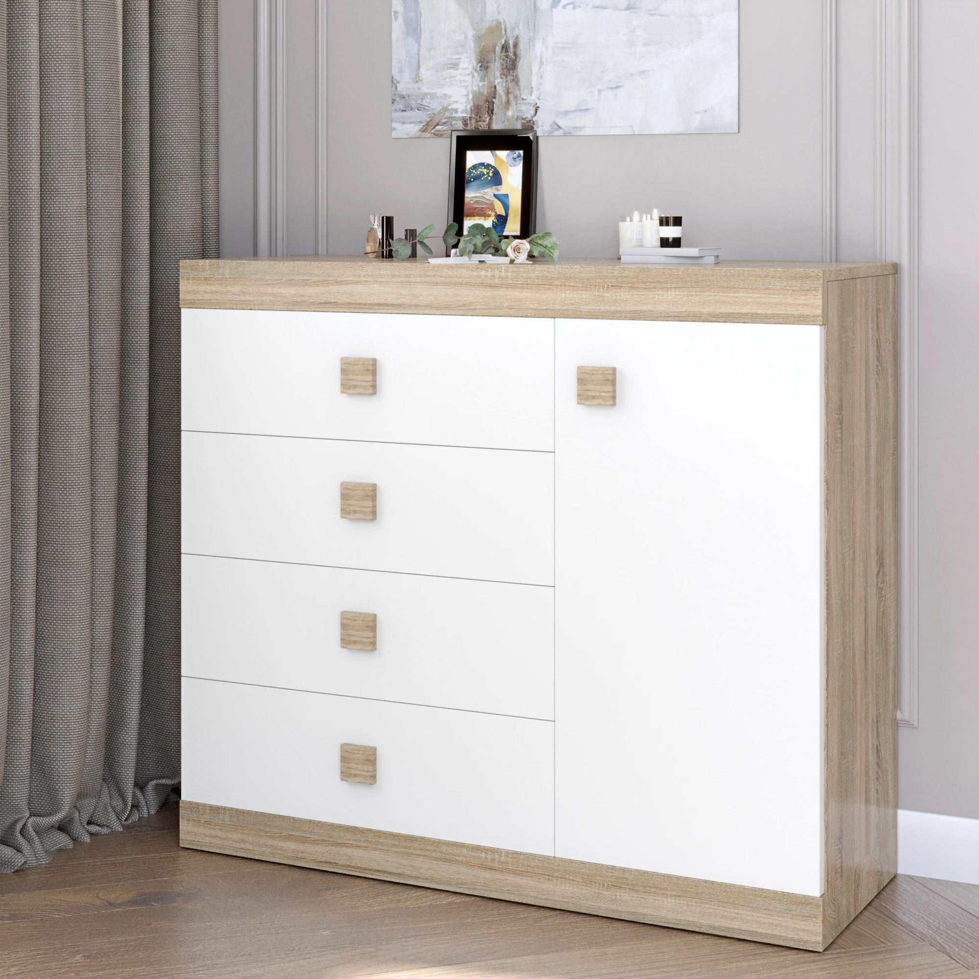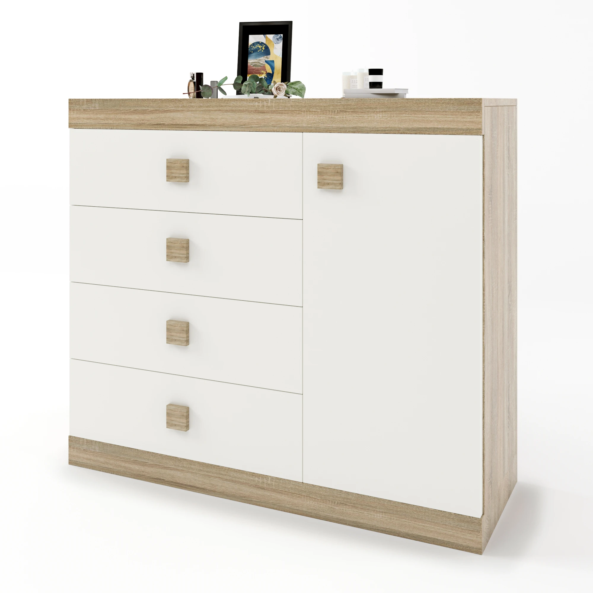 Комод з дверима та 4-ма ящиками Еверест Соната-5 105х38х94 дуб сонома + білий (DTM-2062)