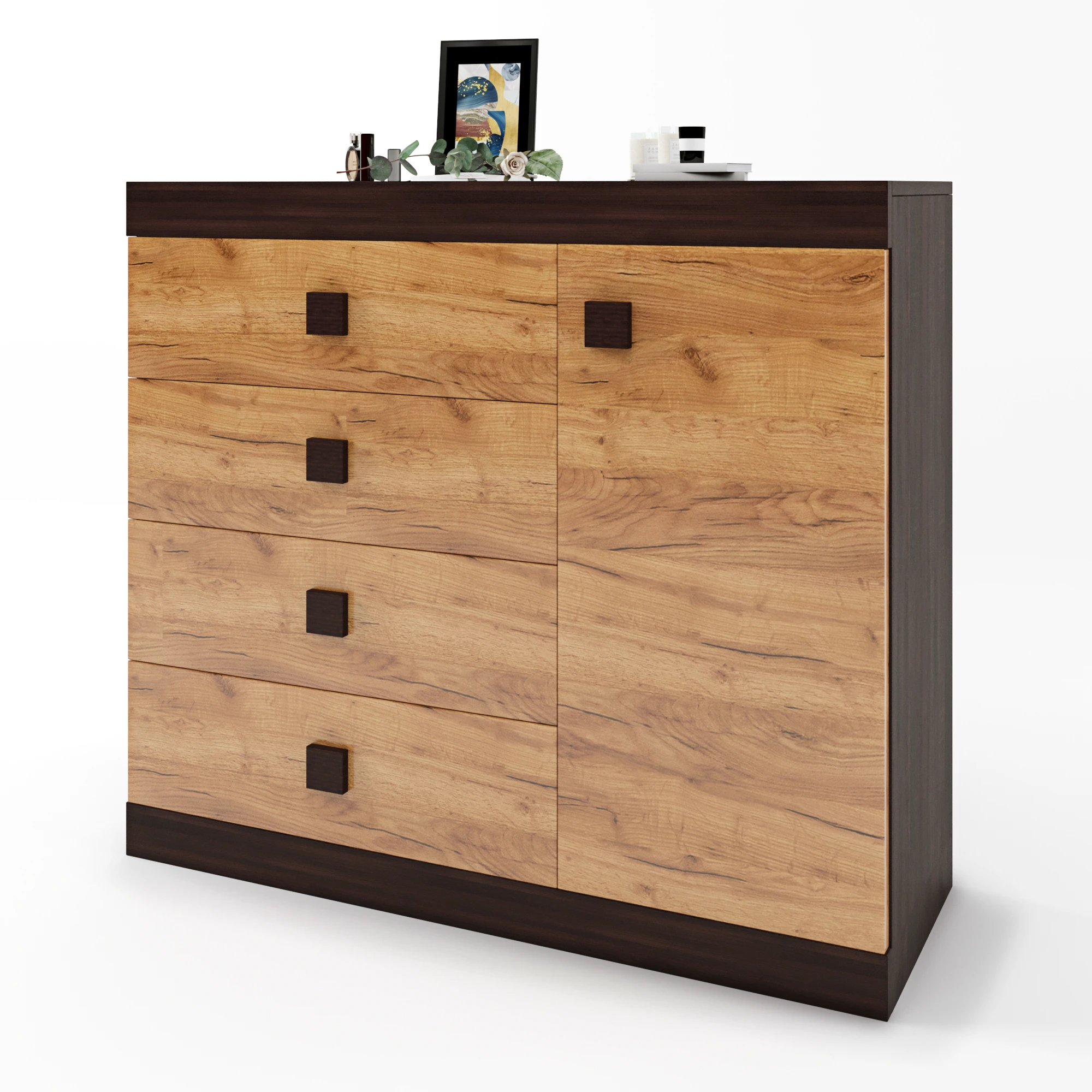 Комод з дверима та 4-ма ящиками Еверест Соната-5 105х38х94 венге темний + дуб крафт золотий (DTM-206