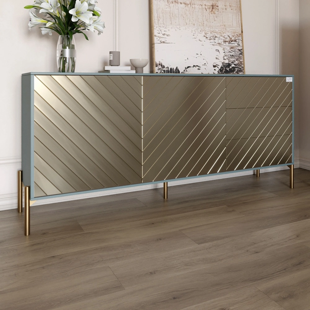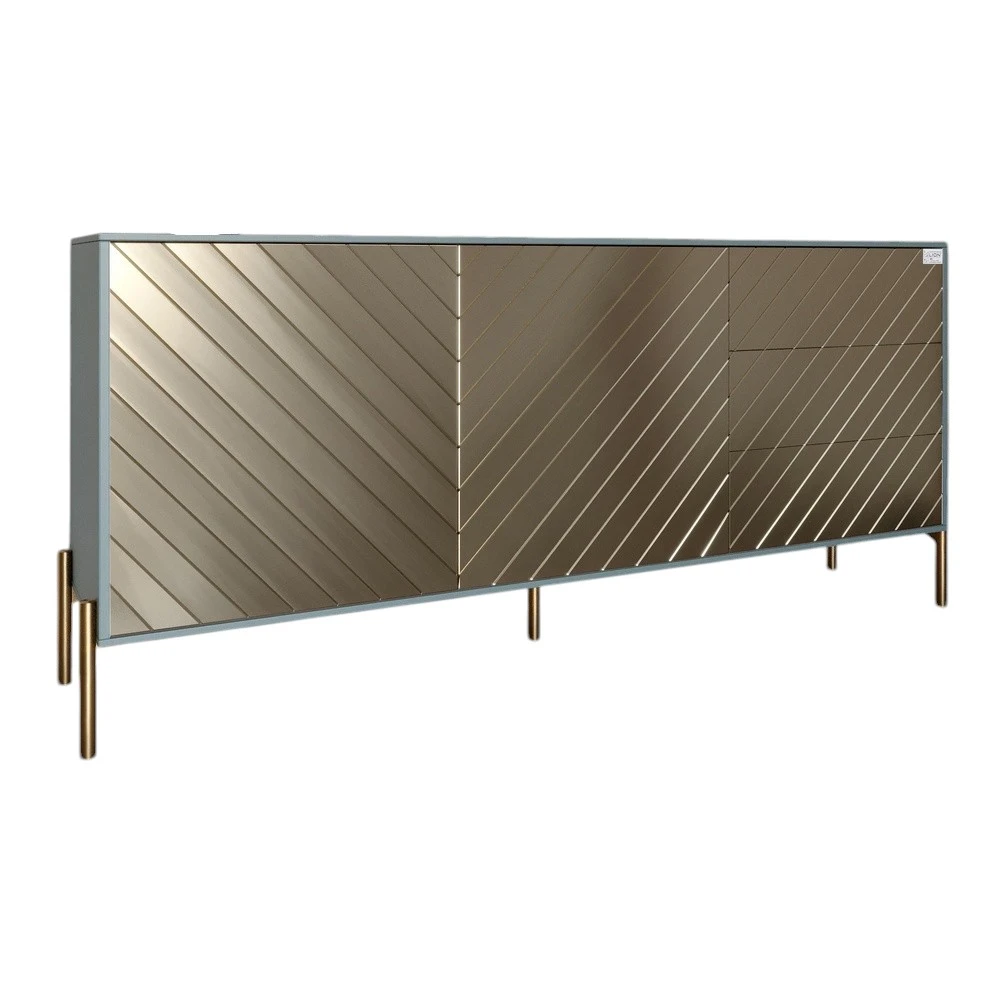 Комод з золотими металевими ніжками LION Амарант 168x40x76,5 см Граніт сірий/Перламутровий металік (