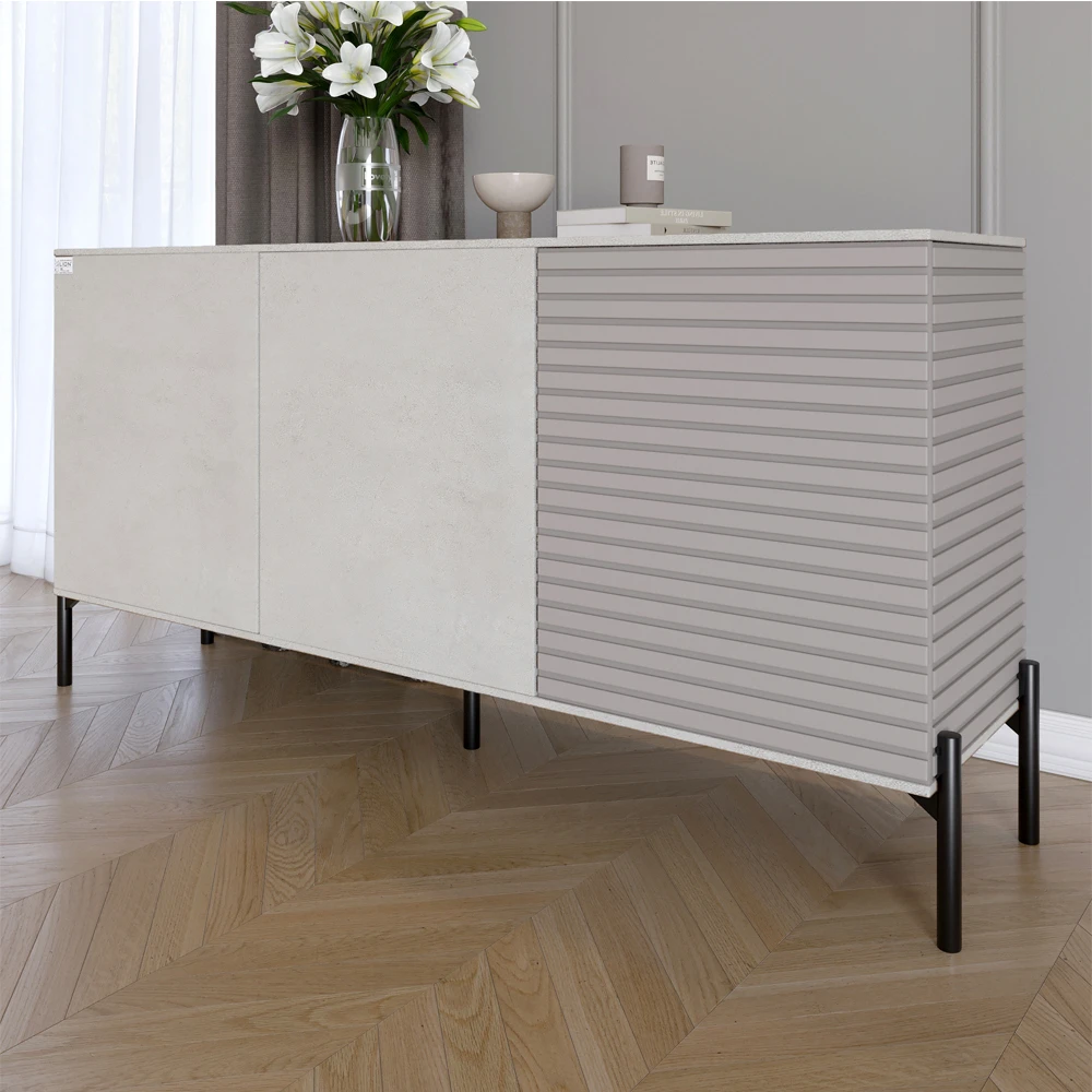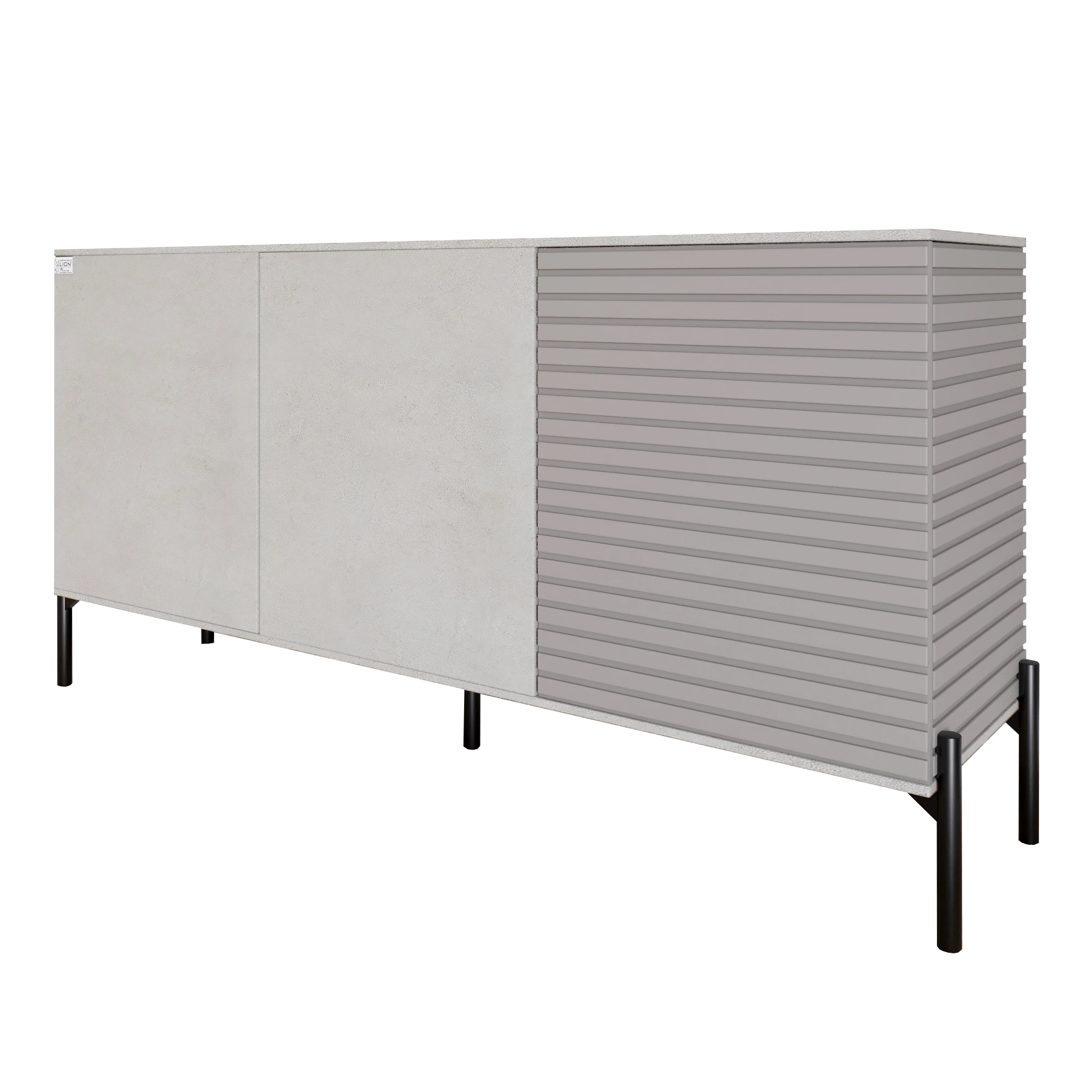 Комод закритий у вітальню на чорних металевих ніжках LION Грей 154x38x76,5 см Бетон Style/Кашемір (L