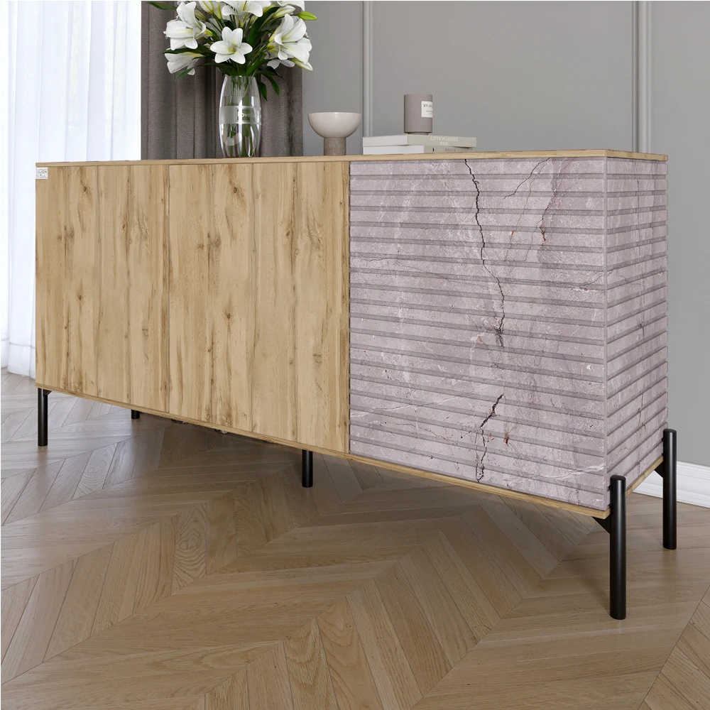 Комод закритий у вітальню на чорних металевих ніжках LION Грей 154x38x76,5 см Дуб Аппалачі/Камінь (L