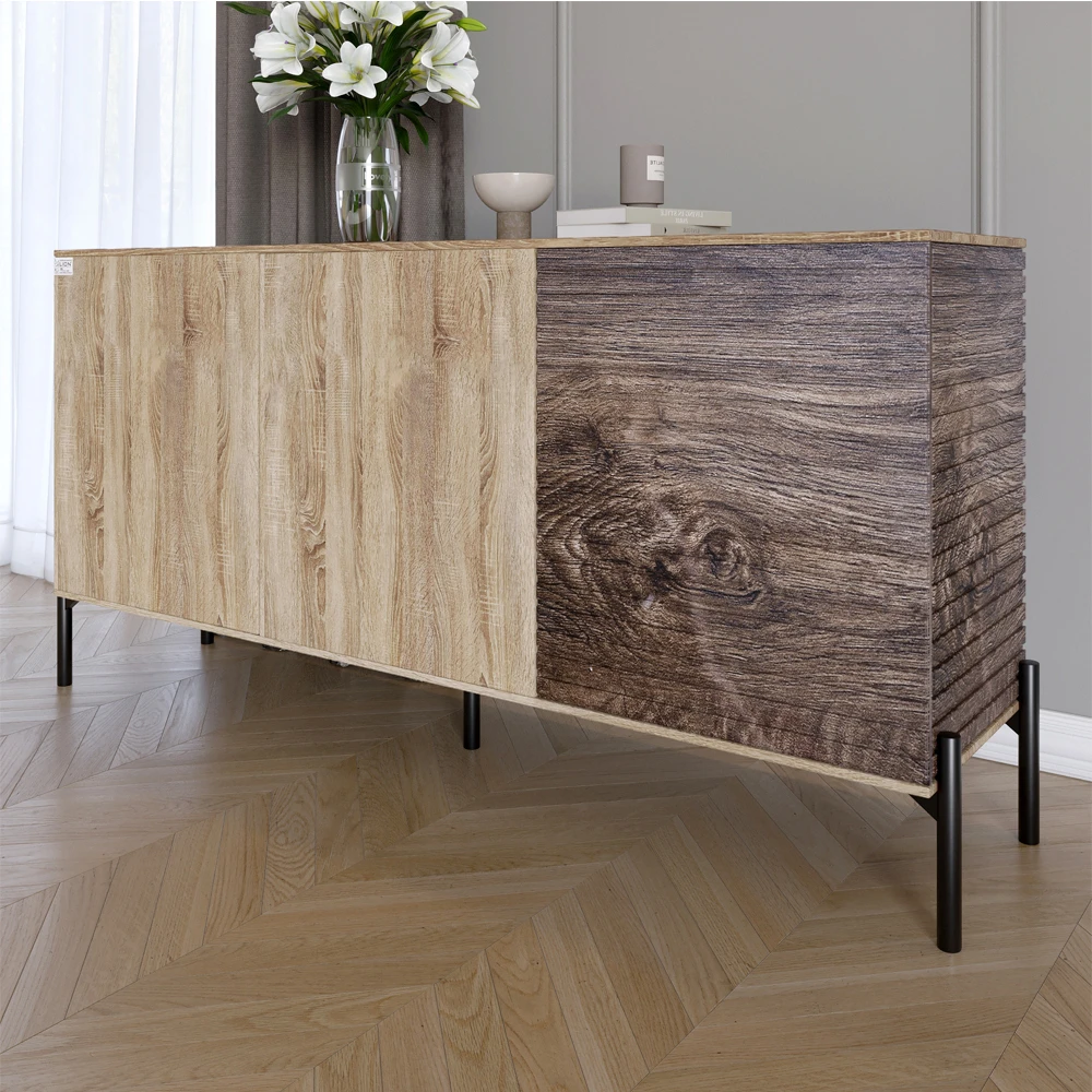 Комод закритий у вітальню на чорних металевих ніжках LION Грей 154x38x76,5 см Дуб сонома/Дерево (LIO