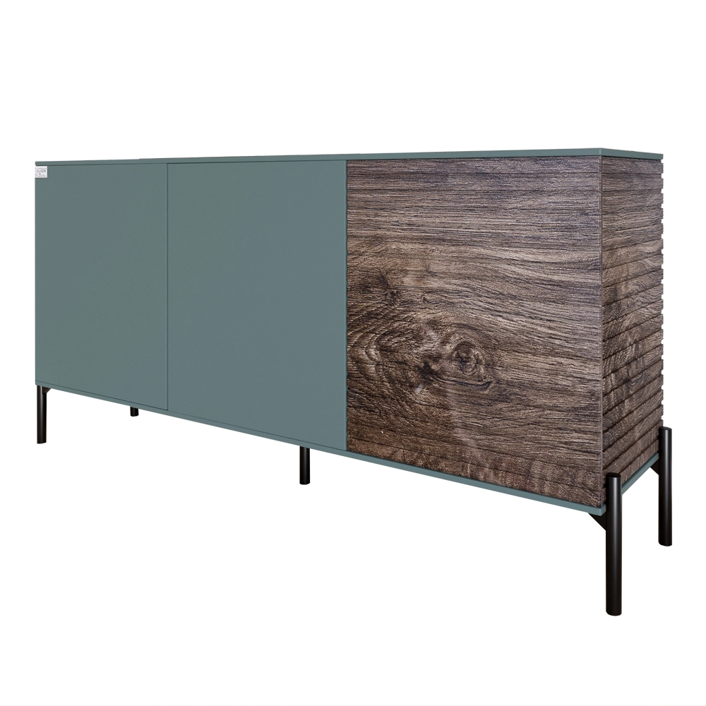 Комод закритий у вітальню на чорних металевих ніжках LION Грей 154x38x76,5 см Граніт сірий/Дерево (L