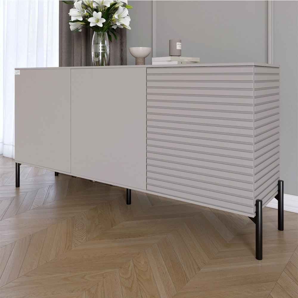 Комод закритий у вітальню на чорних металевих ніжках LION Грей 154x38x76,5 см Кашемір/Кашемір (LION-