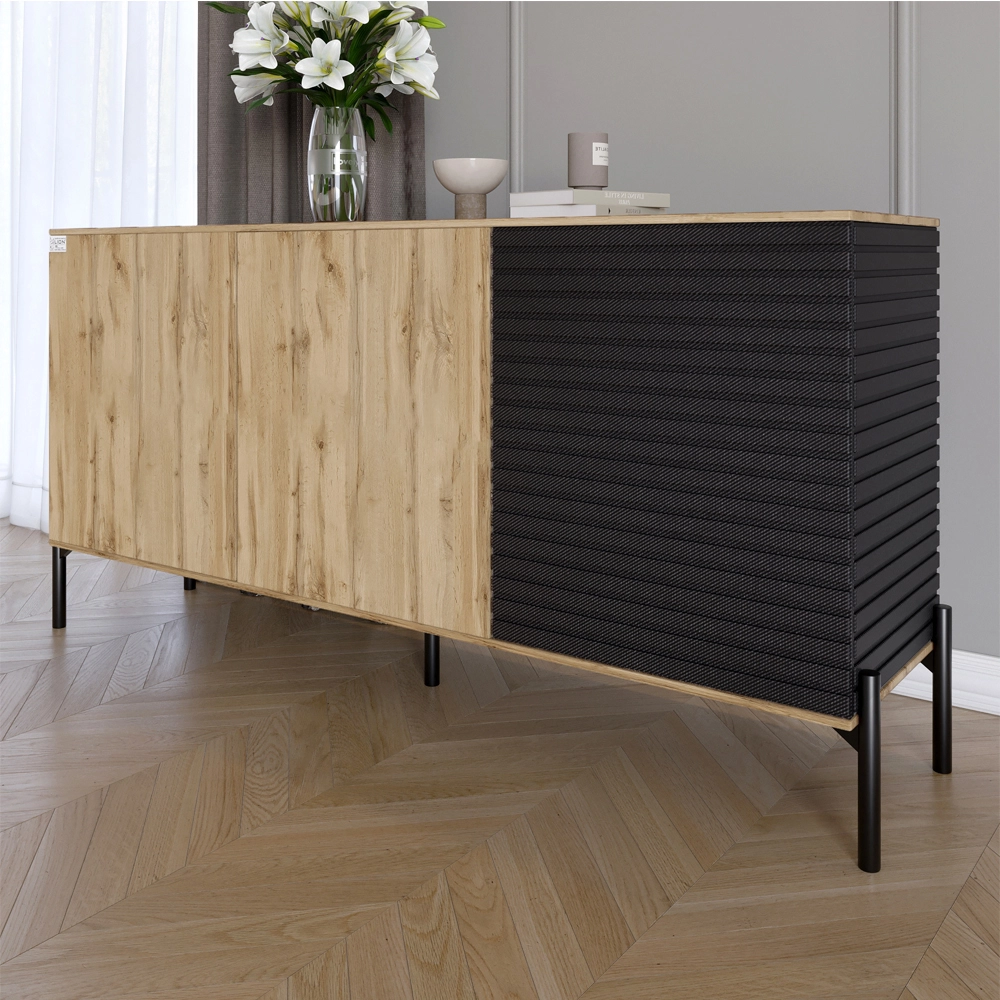 Комод закритий у вітальню на чорних металевих ніжках LION Грей Дуб Аппалачі/Асфальт 1540x380x765 (LI