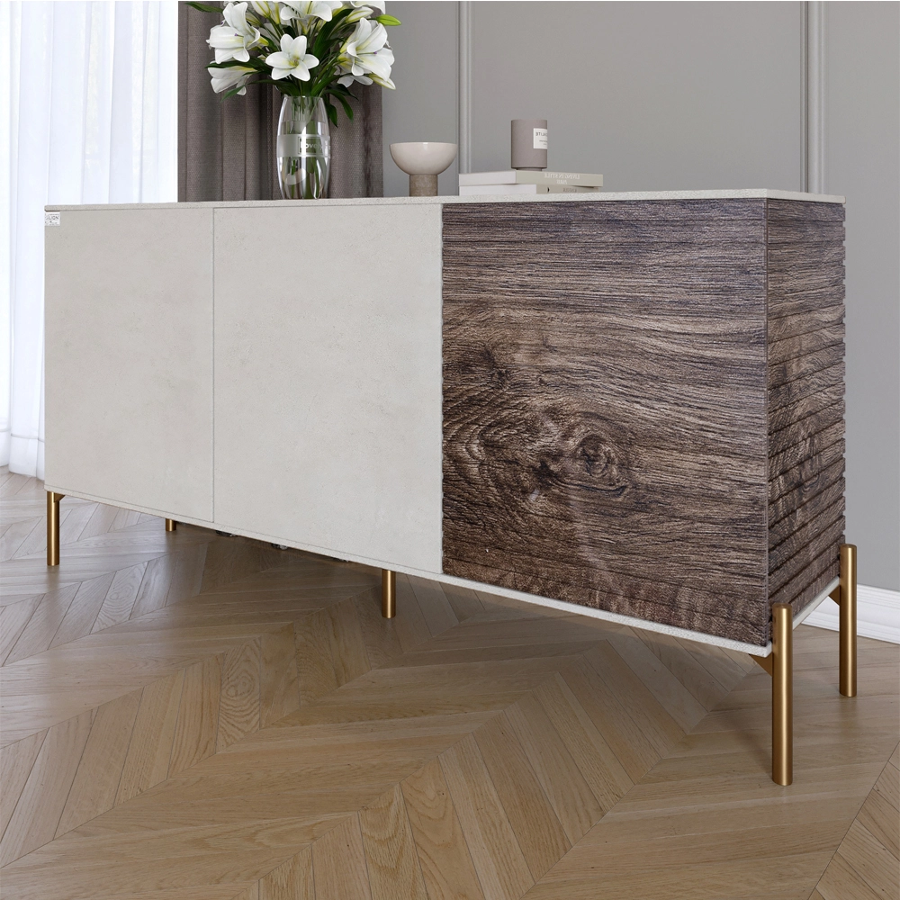 Комод закритий у вітальню на золотих металевих ніжках LION Грей 154x38x76,5 см Бетон Style/Дерево (L