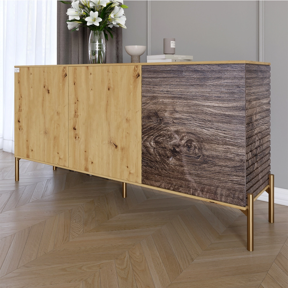 Комод закритий у вітальню на золотих металевих ніжках LION Грей 154x38x76,5 см Дуб Артизан/Дерево (L