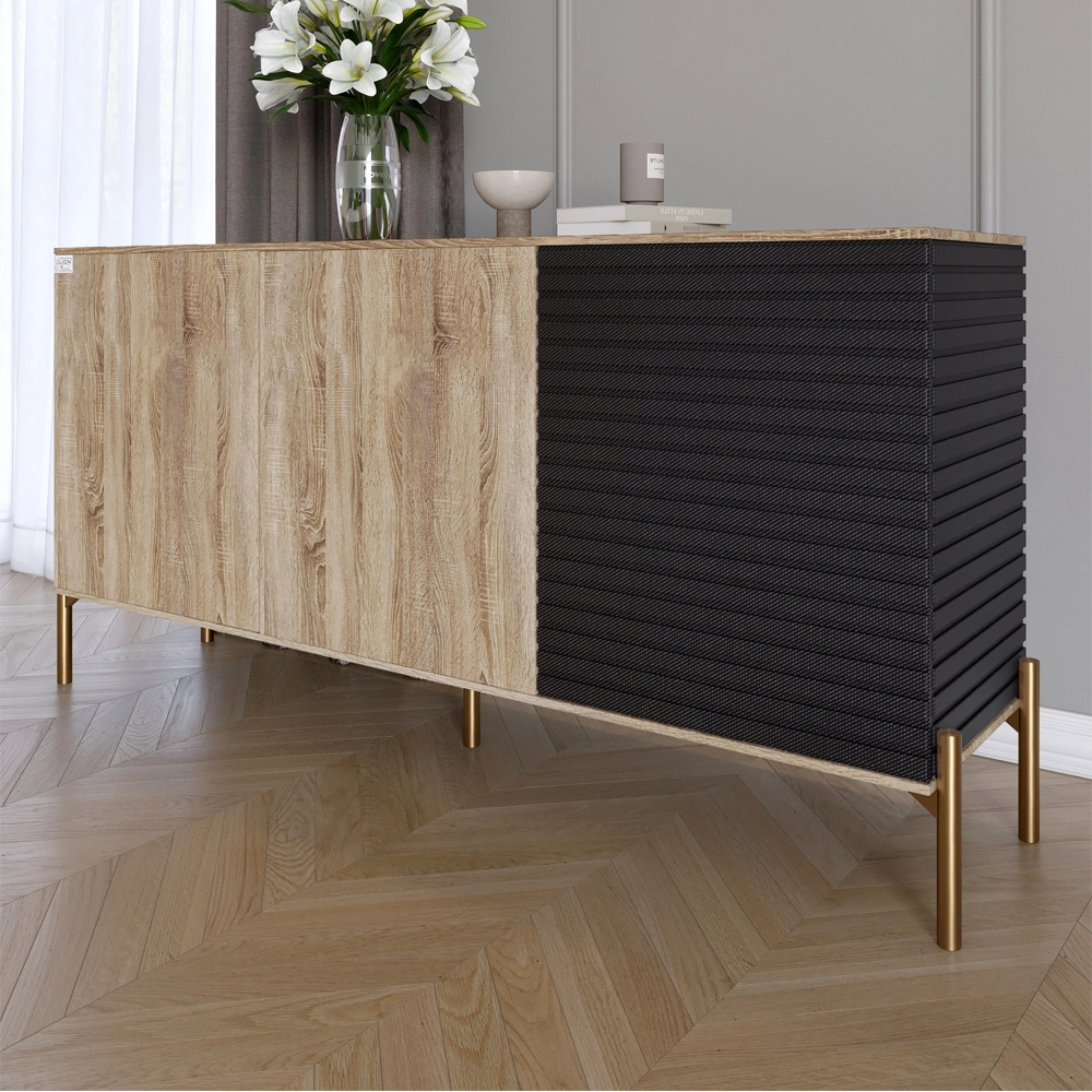 Комод закритий у вітальню на золотих металевих ніжках LION Грей 154x38x76,5 см Дуб сонома трюфель/Ас