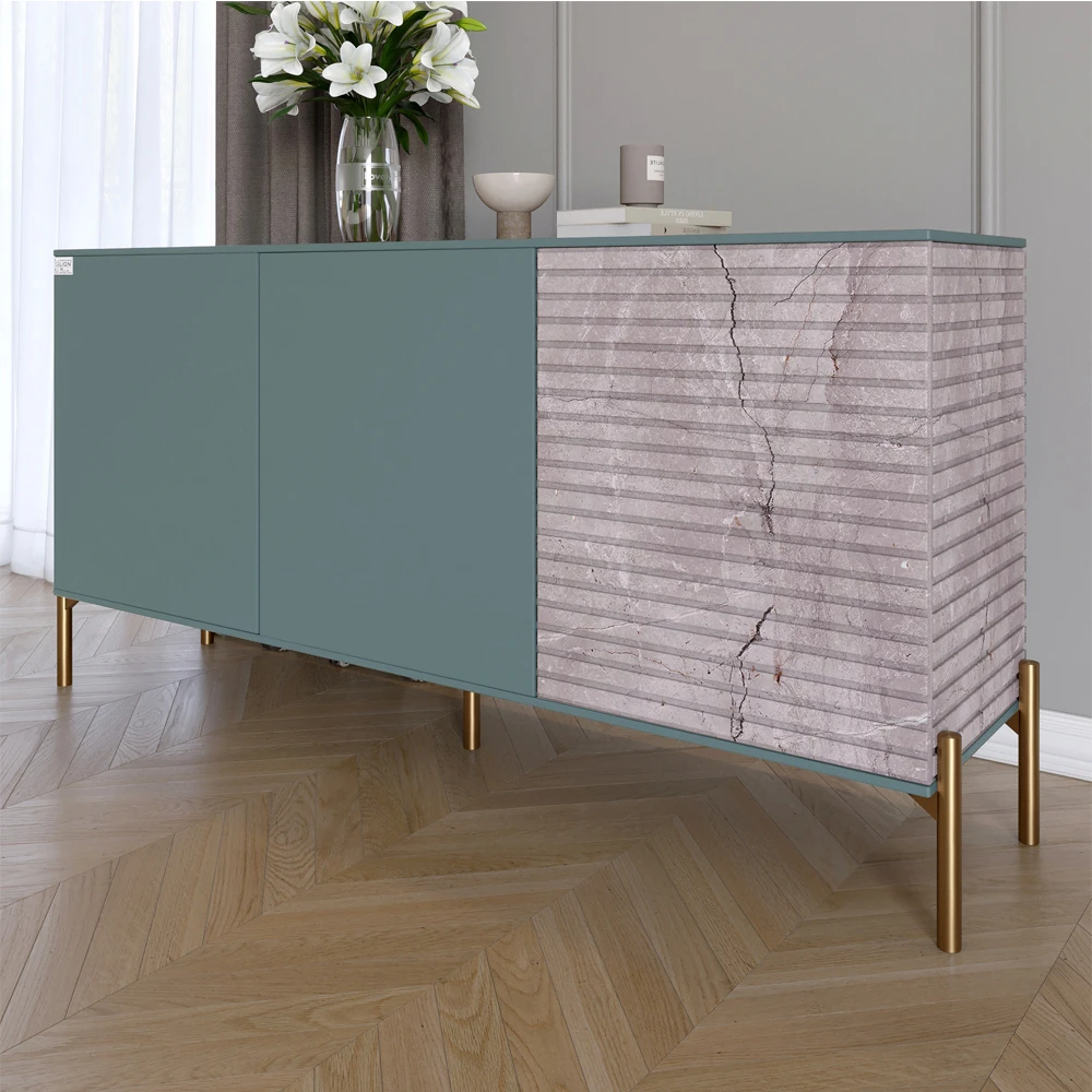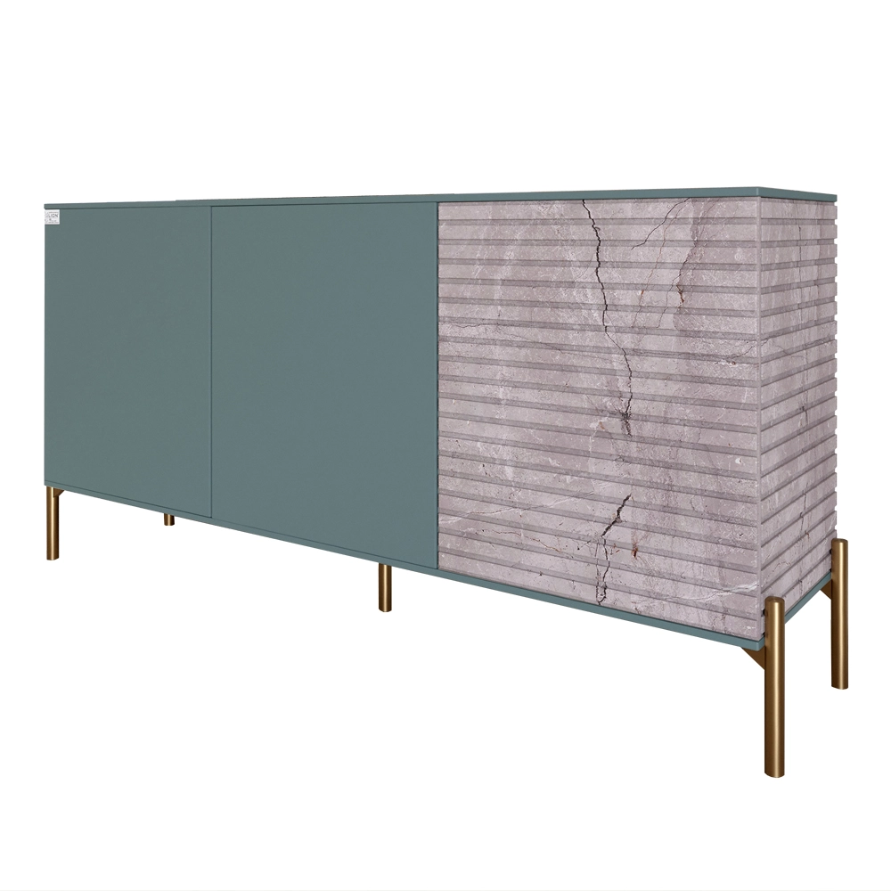 Комод закритий у вітальню на золотих металевих ніжках LION Грей 154x38x76,5 см Граніт сірий/Камінь (