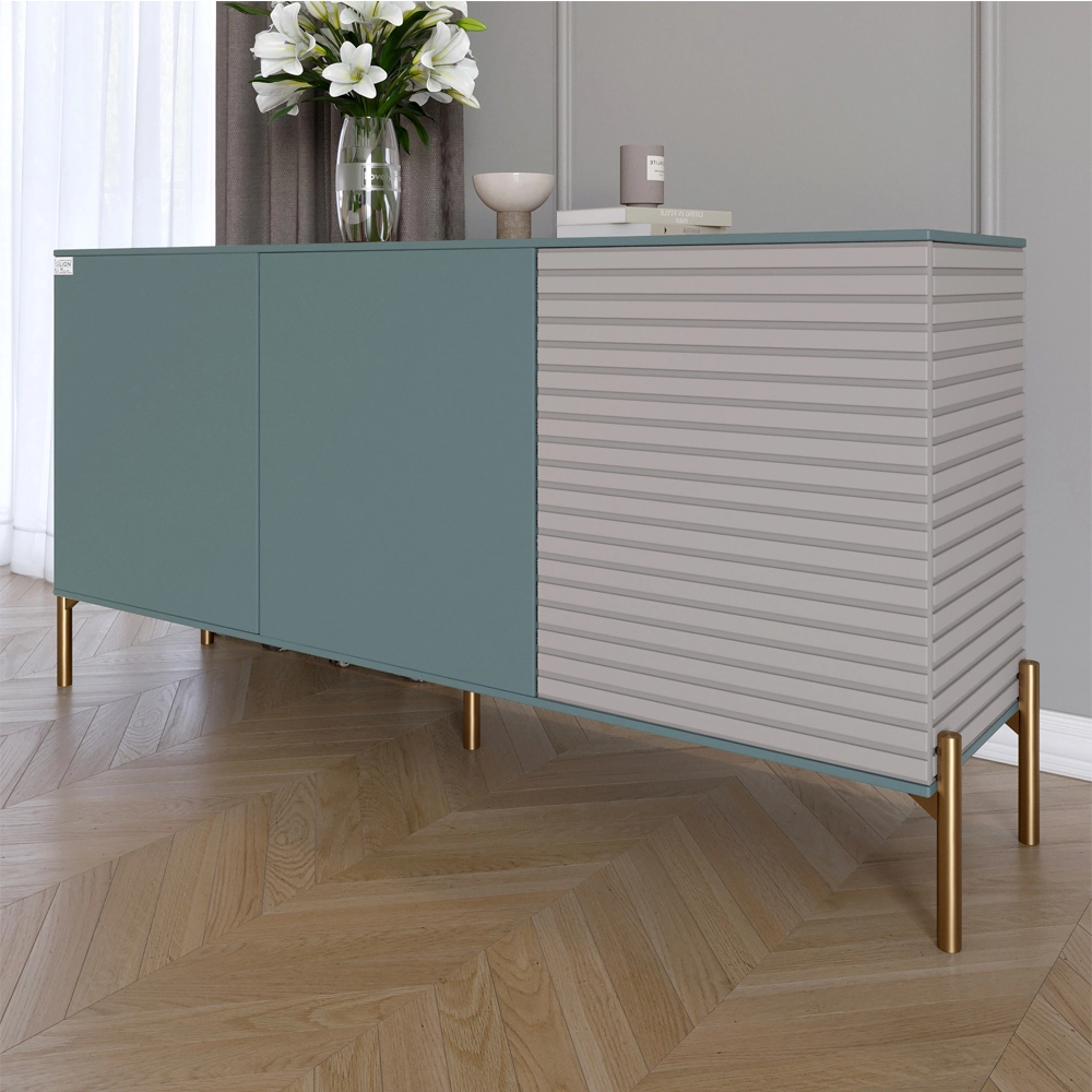 Комод закритий у вітальню на золотих металевих ніжках LION Грей 154x38x76,5 см Граніт сірий/Кашемір