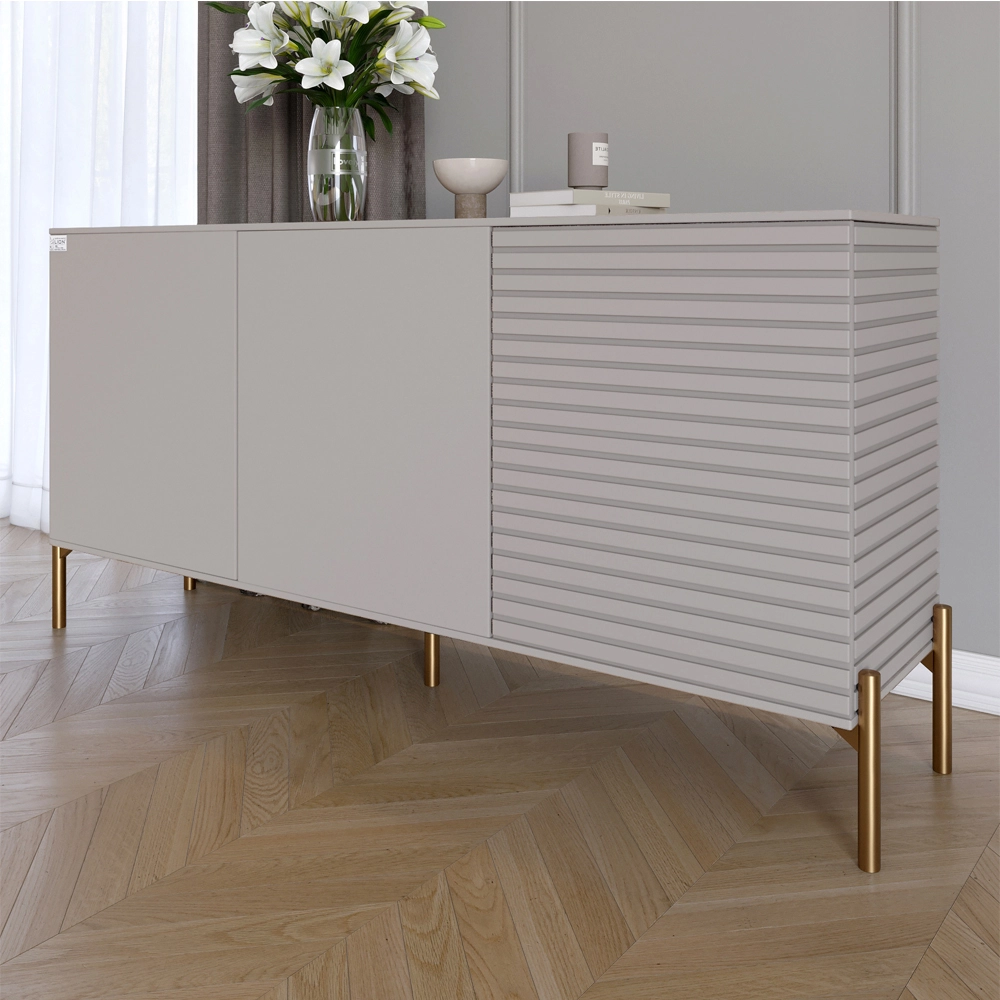 Комод закритий у вітальню на золотих металевих ніжках LION Грей 154x38x76,5 см Кашемір/Кашемір (LION