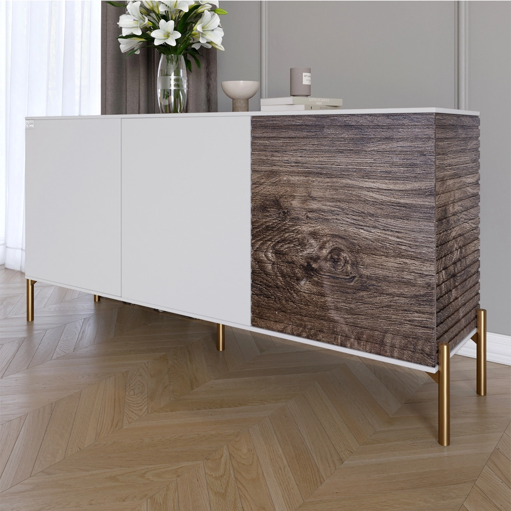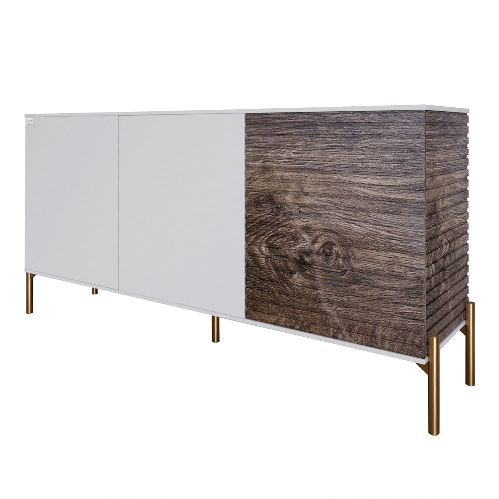 Комод закритий у вітальню на золотих металевих ніжках LION Грей 154x38x76,5 см Німфея Альба (білий)/