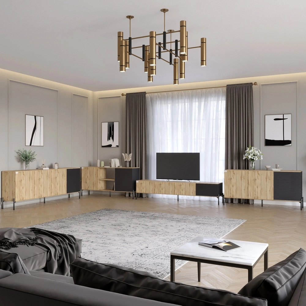 Комплект мебели для гостиной LION Грей станет идеальным выбором для тех, кто ценит эстетику и комфорт. Его стильный дизайн с рельефными деталями на фасаде придает динамичности вашему интерьеру, а металлические ножки обеспечивают стабильность и лёгкость конструкции. Модульная структура позволяет комбинировать элементы по своему усмотрению, что делает комплект универсальным для любого пространства. Благодаря высококачественному материалу ЛДСП SWISS KRONO, вы получаете мебель, которая выдерживает механические повреждения, влагу и перепады температур.