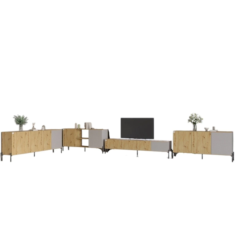 Комплект мебели для гостиной LION Грэй станет идеальным решением для вашего дома, сочетая элегантный дизайн с практичностью. Благодаря металлическим ножкам, вы получите не только стабильность, но и легкость конструкции, а рельефные детали на фасаде придадут вашему интерьеру оригинальность. Этот комплект включает комод, открытый и закрытый комоды, а также тумбу для телевизора, что делает его идеальным выбором для интерьеров в стиле минимализм, лофт или модерн.