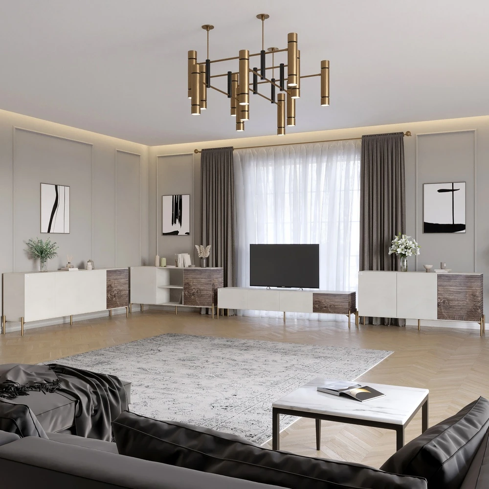 Комплект мебели для гостиной LION Грей – это идеальное сочетание современного дизайна и функциональности. Благодаря модульной структуре, вы можете легко комбинировать элементы по своему вкусу, адаптируя мебель к любому пространству. Металлические ножки не только придают стойкости, но и придают изделию легкость, а рельефные детали на фасаде привносят оригинальность в ваш интерьер. Этот комплект станет стильным акцентом в любом интерьере, от минимализма до лофта.