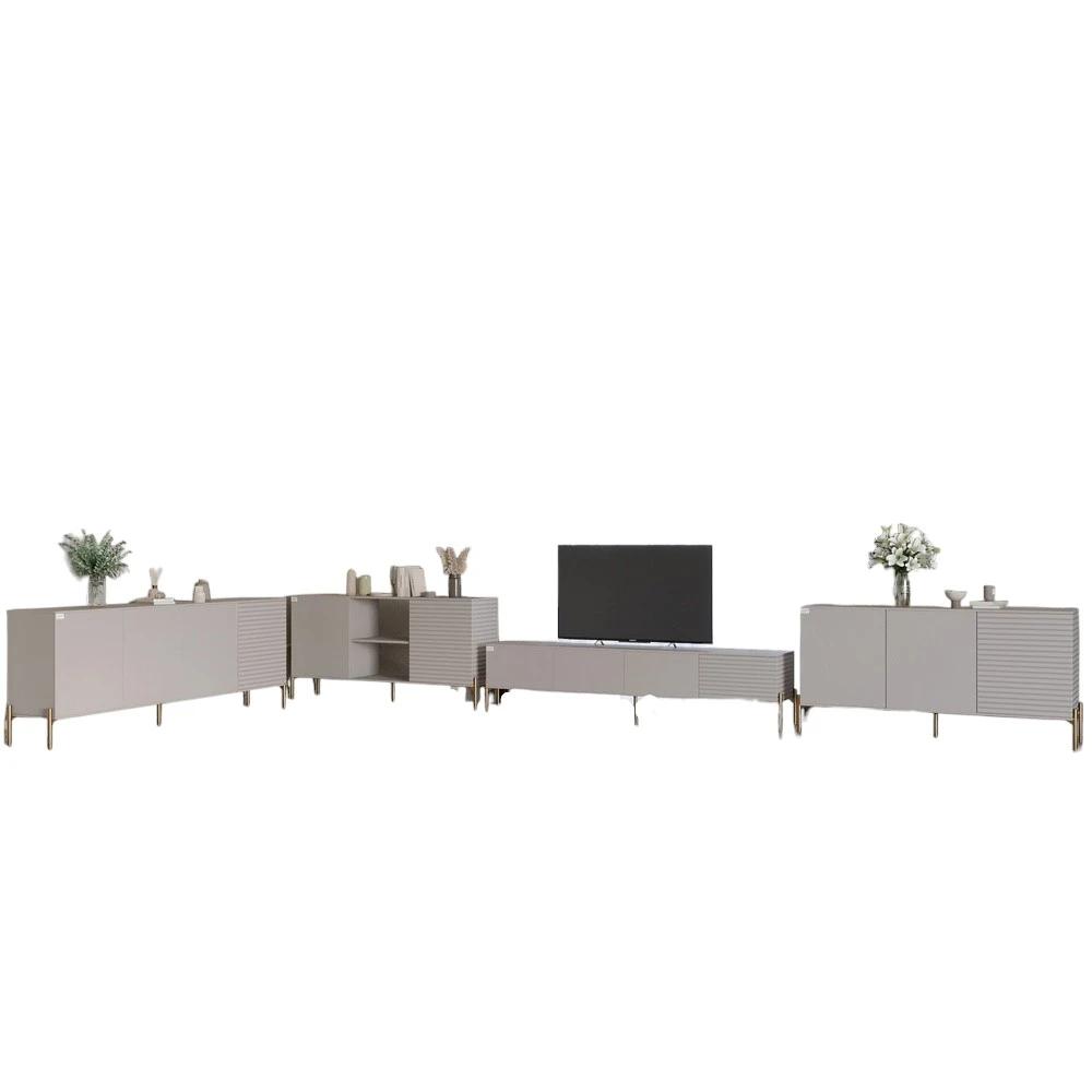 Комплект мебели для гостиной LION Грэй станет настоящим акцентом вашего дома, сочетая эстетику и практичность. Благодаря стильному дизайну и современным материалам, он идеально впишется в интерьеры в стиле минимализм, лофт или модерн. Металлические золотые ножки обеспечивают стабильность, а рельефные детали на фасадах придают оригинальность. Модульная структура комплекта позволяет легко комбинировать элементы, адаптируя мебель под ваши потребности и пространство.
