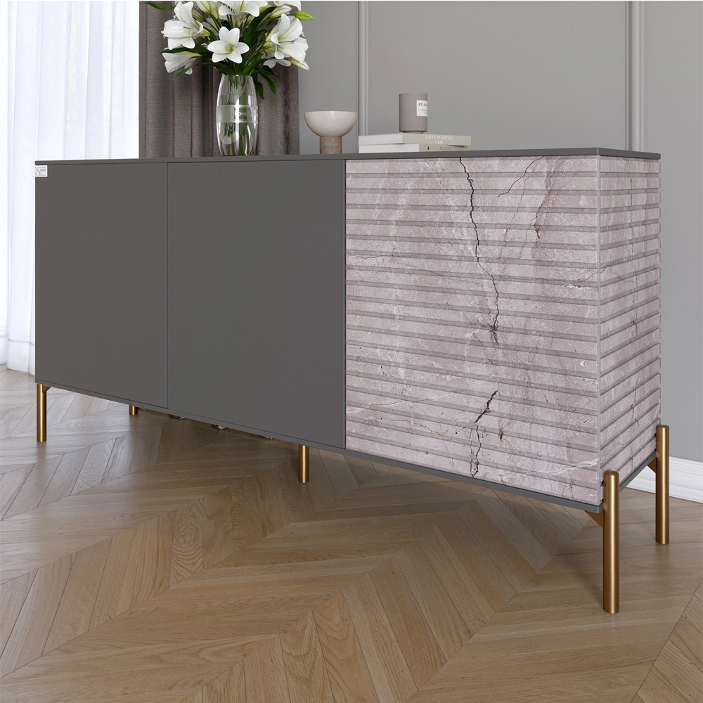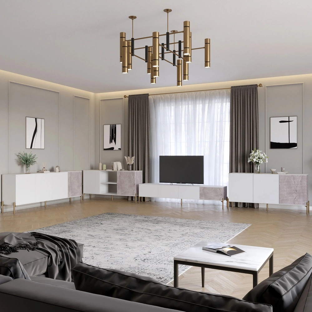Комплект мебели для гостиной LION Грей – это идеальное сочетание элегантного дизайна и функциональности. Благодаря своим металлическим ножкам он не только выглядит стильно, но и обеспечивает стабильность и легкость конструкции. Рельефные детали на фасаде придают оригинальность, а модульная структура позволяет адаптировать мебель под любой интерьер, от минимализма до лофта. В комплект входят комод, открытый комод, закрытый комод и тумба для ТВ, обеспечивающая максимальную универсальность в использовании.