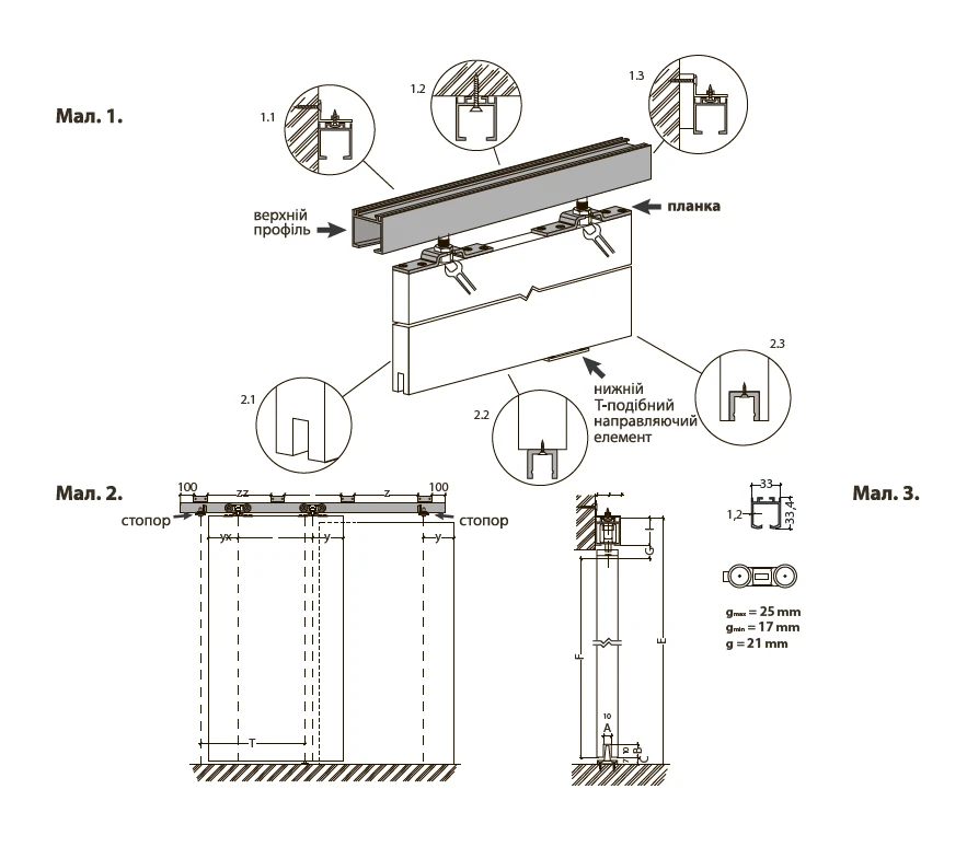 роликова каретка з планкою – 2 шт.